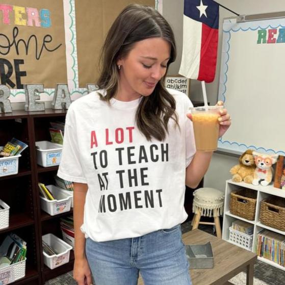 Model is wearing a large white comfort colors tee for an oversized fit.