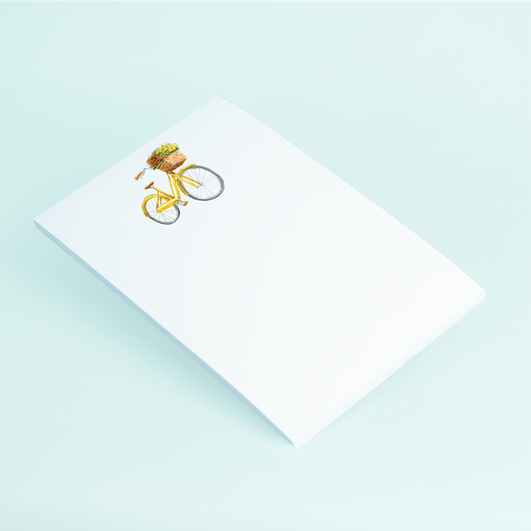 Celebrate the beauty of autumn with our picturesque notepad featuring a watercolor fall-themed bike. Perfect for sending warm seasonal greetings, this original artwork captures the essence of crisp fall days and outdoor adventures. Share the vibrant colors and spirit of the season with this charming design from Taylor Paladino, ideal for autumn birthdays, Thanksgiving wishes, or any occasion during the fall months.