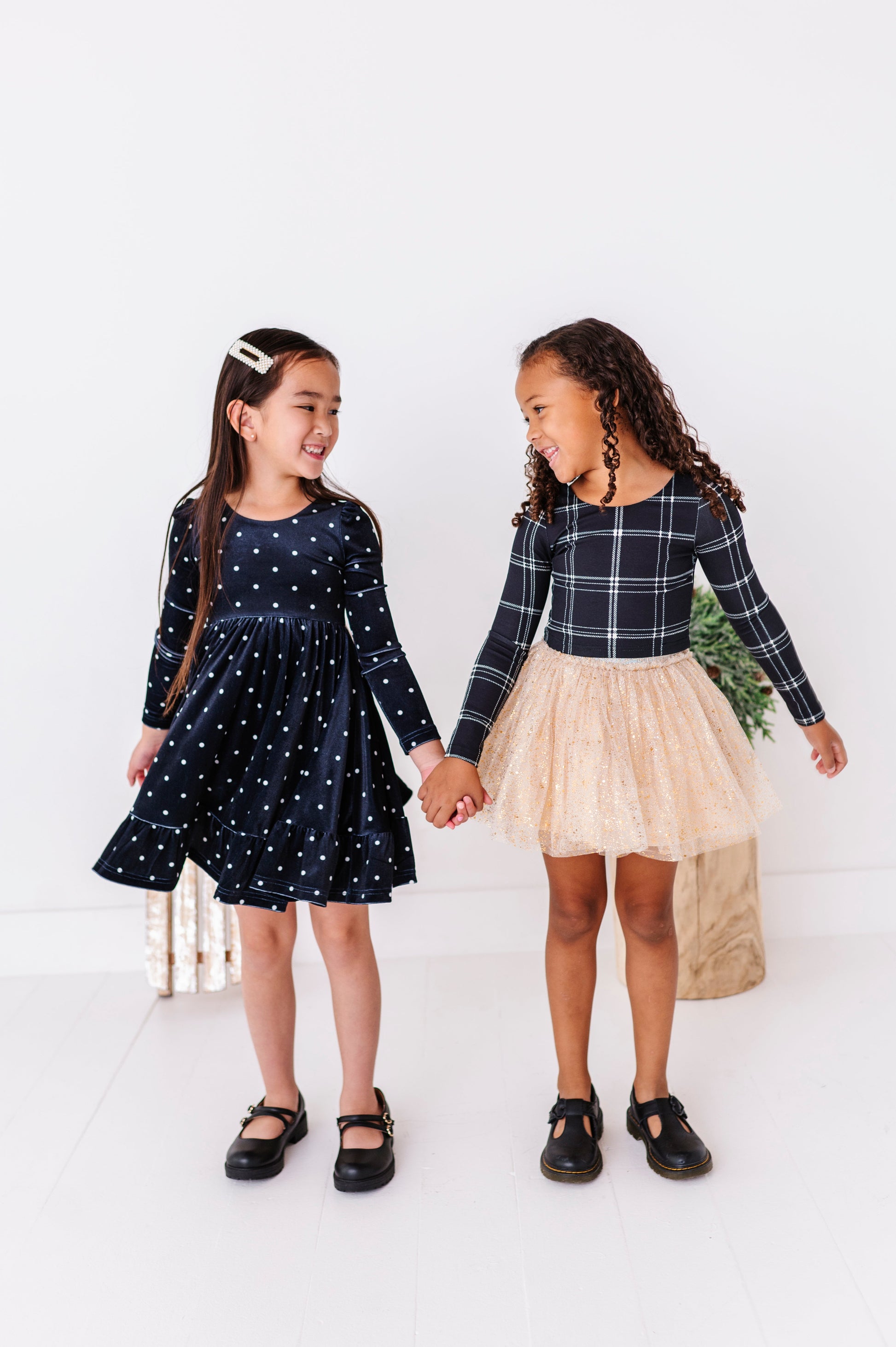 Black Plaid | CROPPED Bow Back Long Sleeve Top
