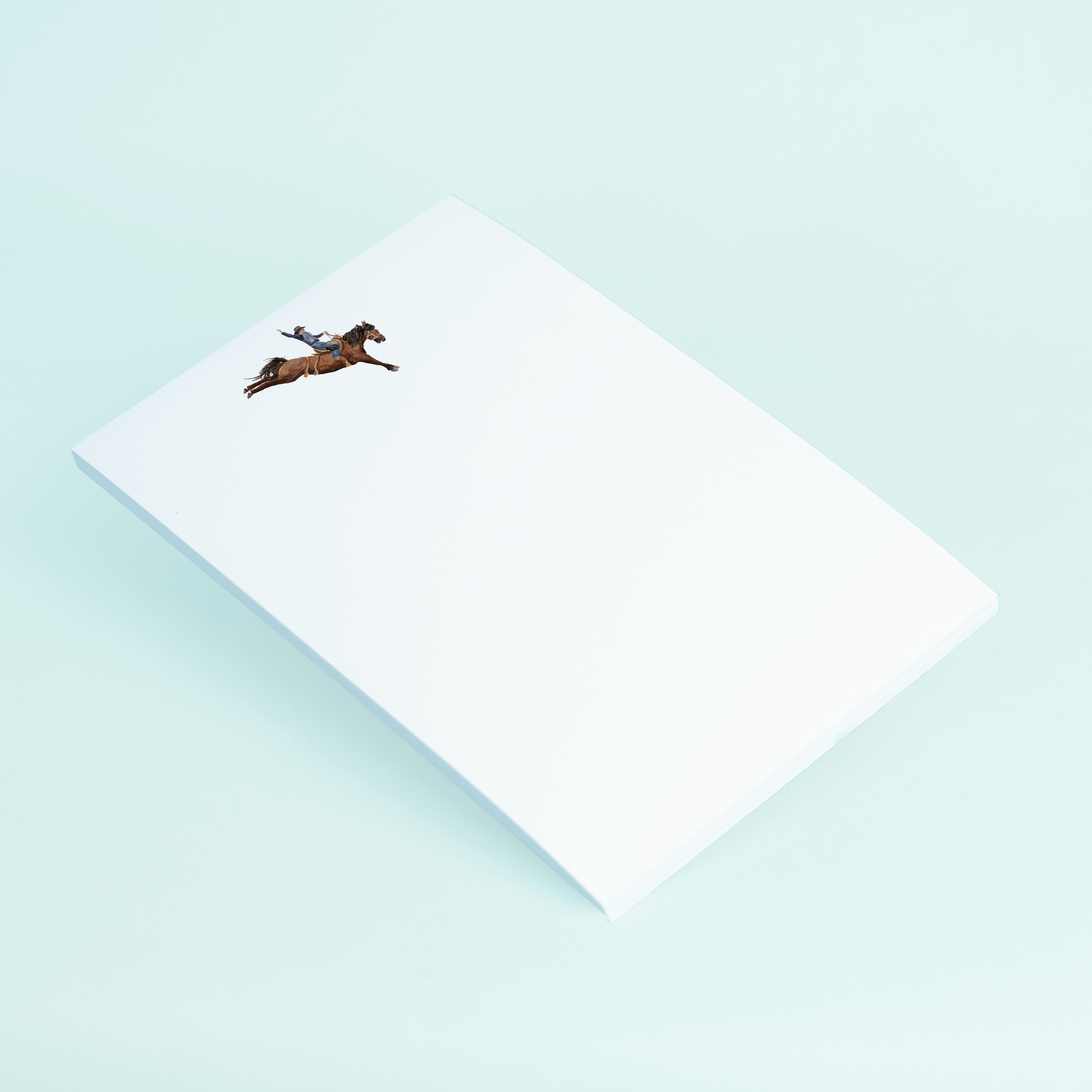 Capture the rugged spirit of the Wild West with our dynamic notepad featuring a watercolor bucking bronco and cowboy. This vibrant design embodies the thrill and adventure of rodeo life, perfect for celebrating special occasions or conveying a spirited message.
