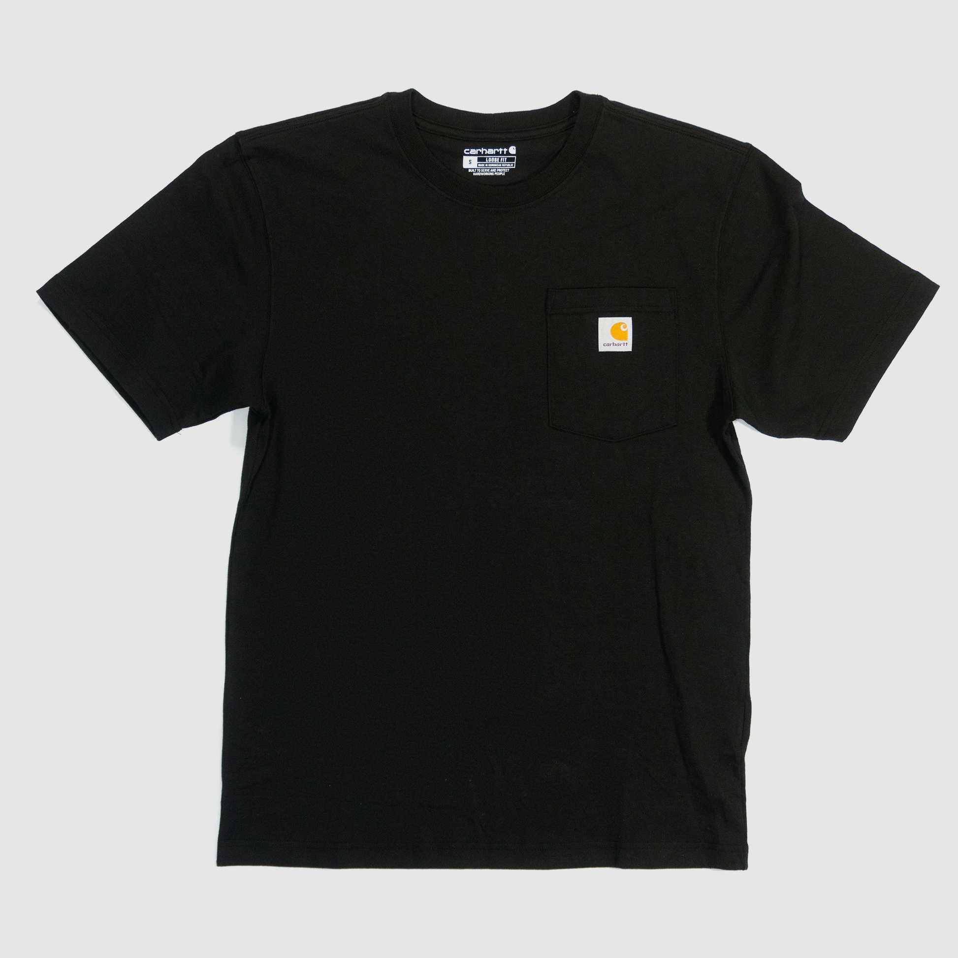 - Carhartt label sewn on left chest pocket