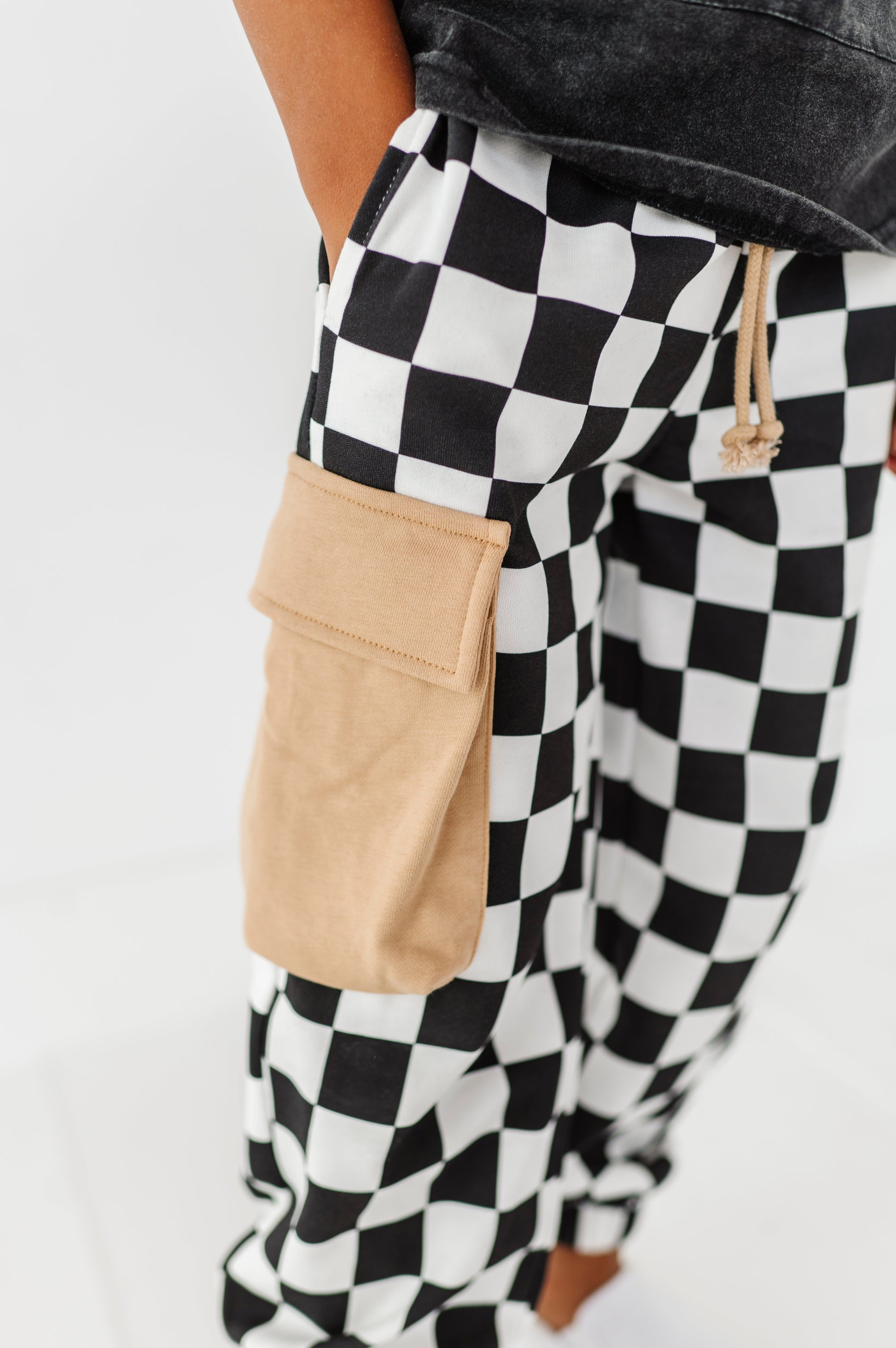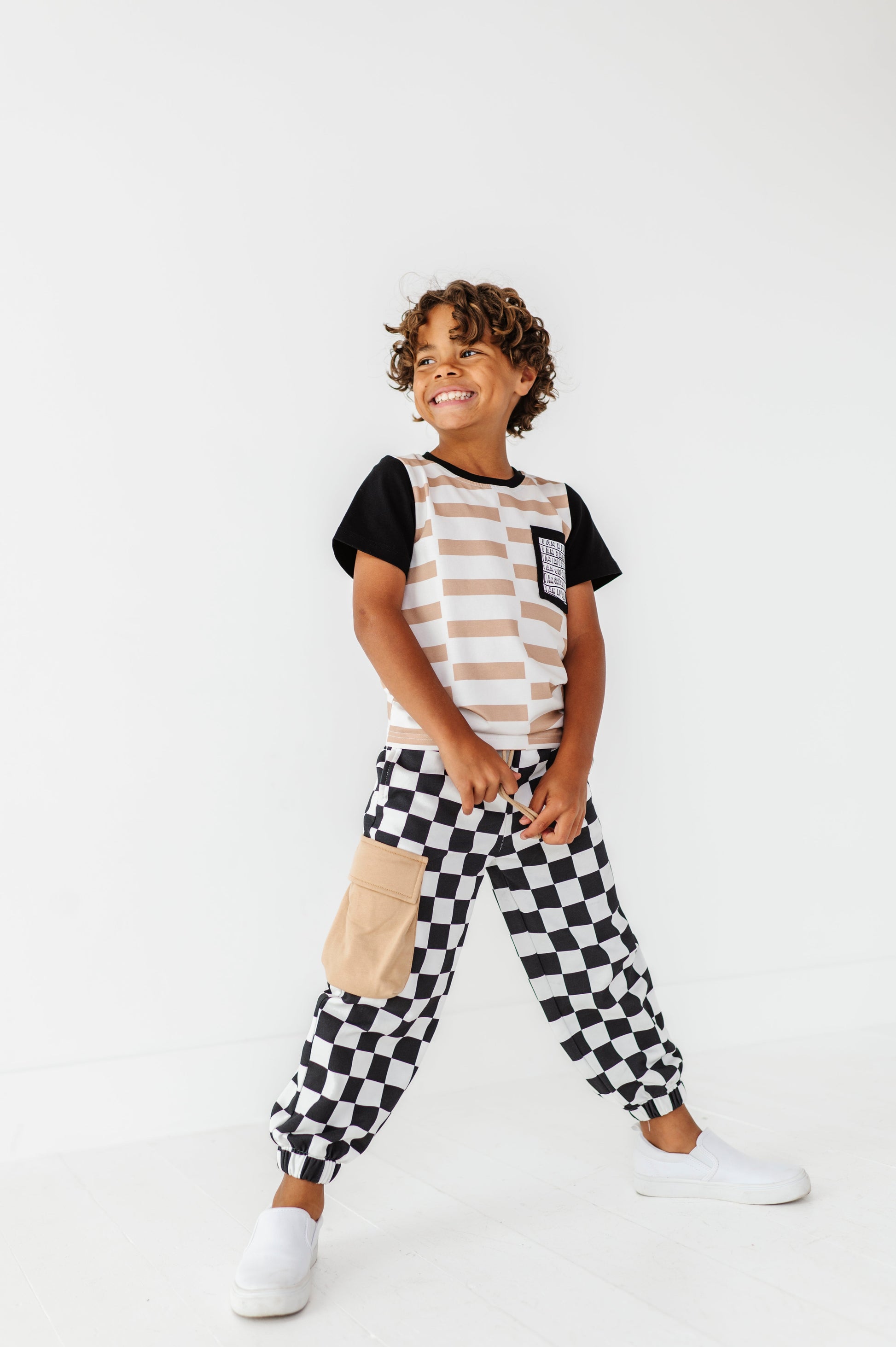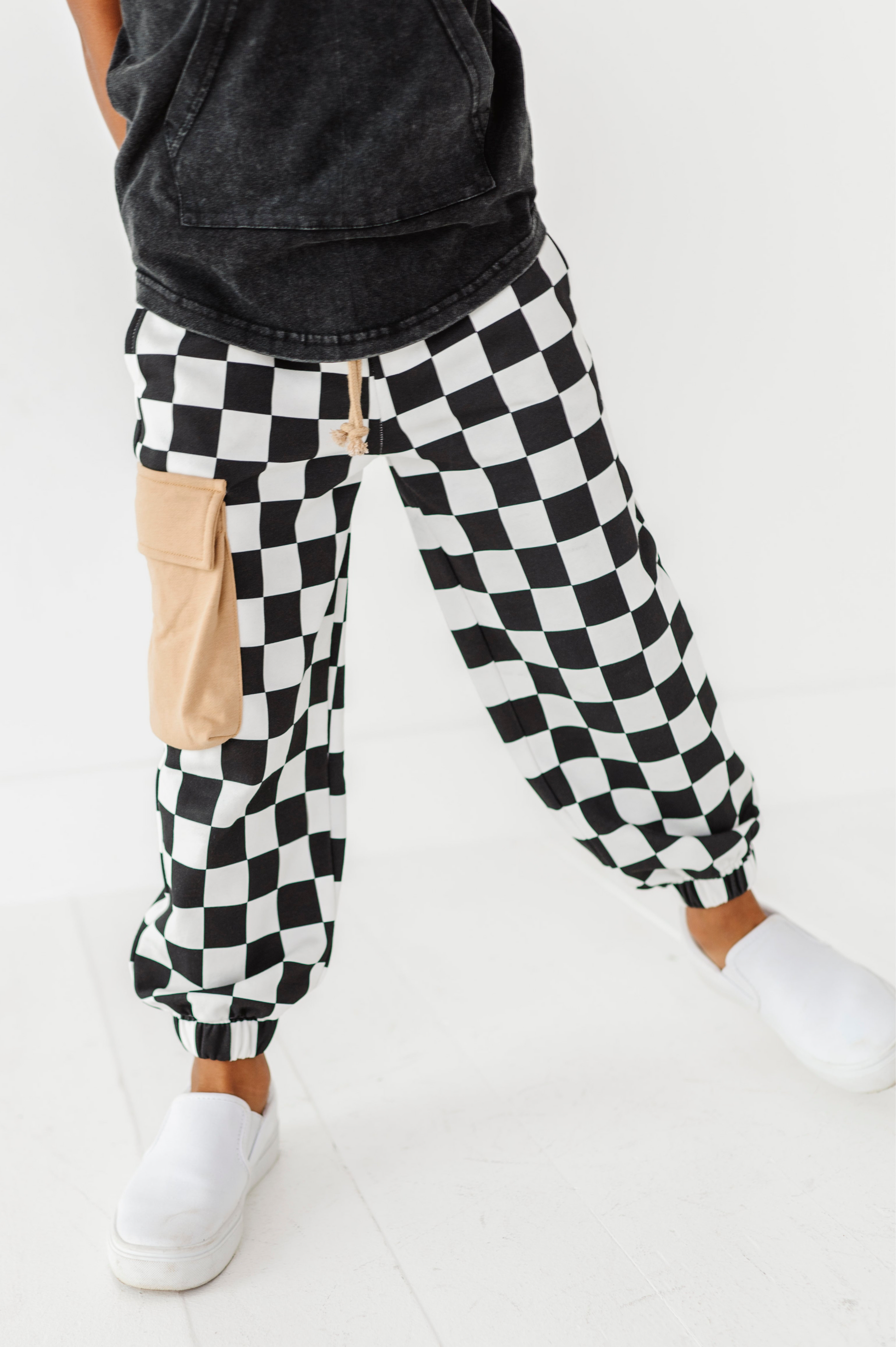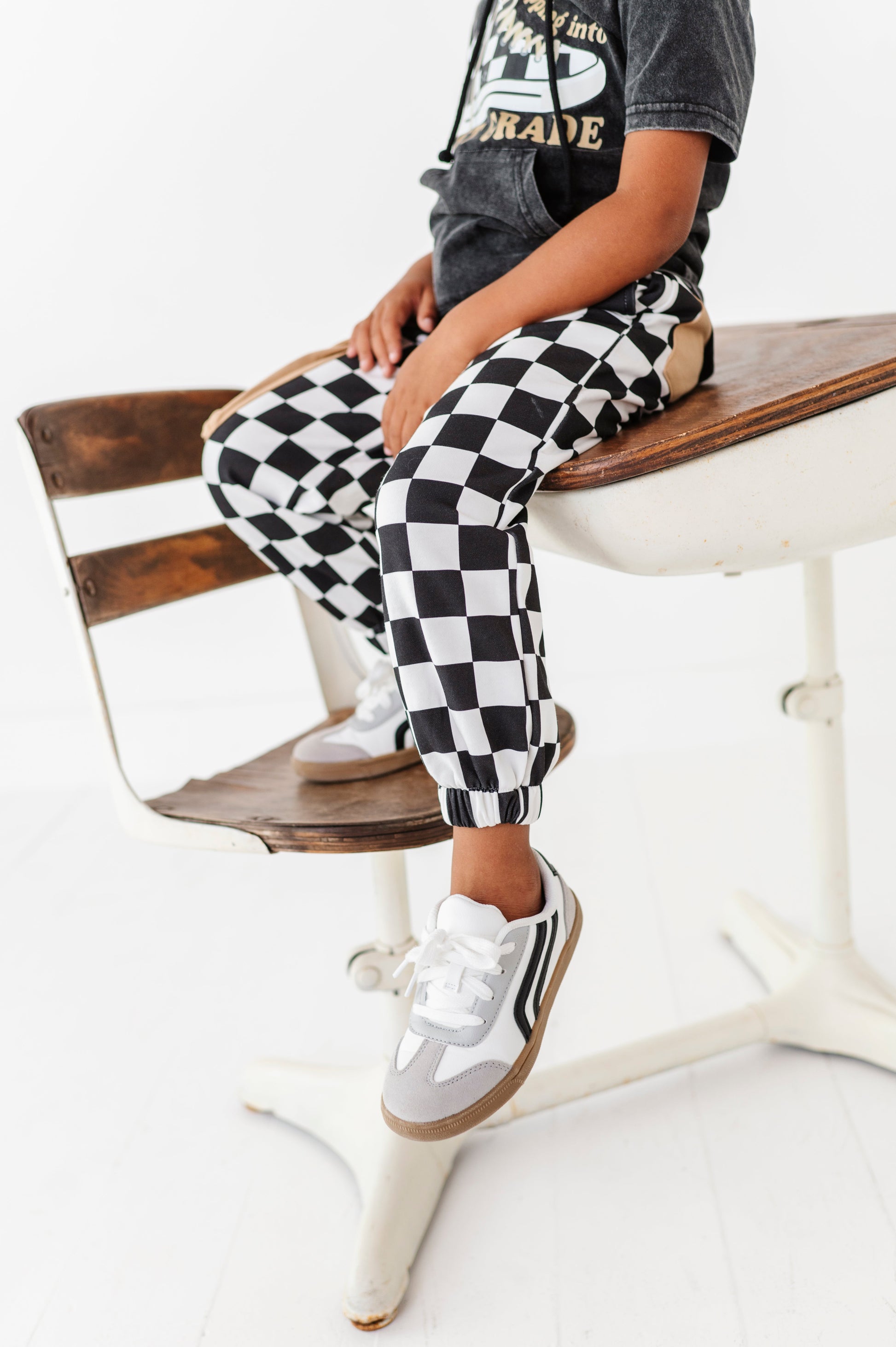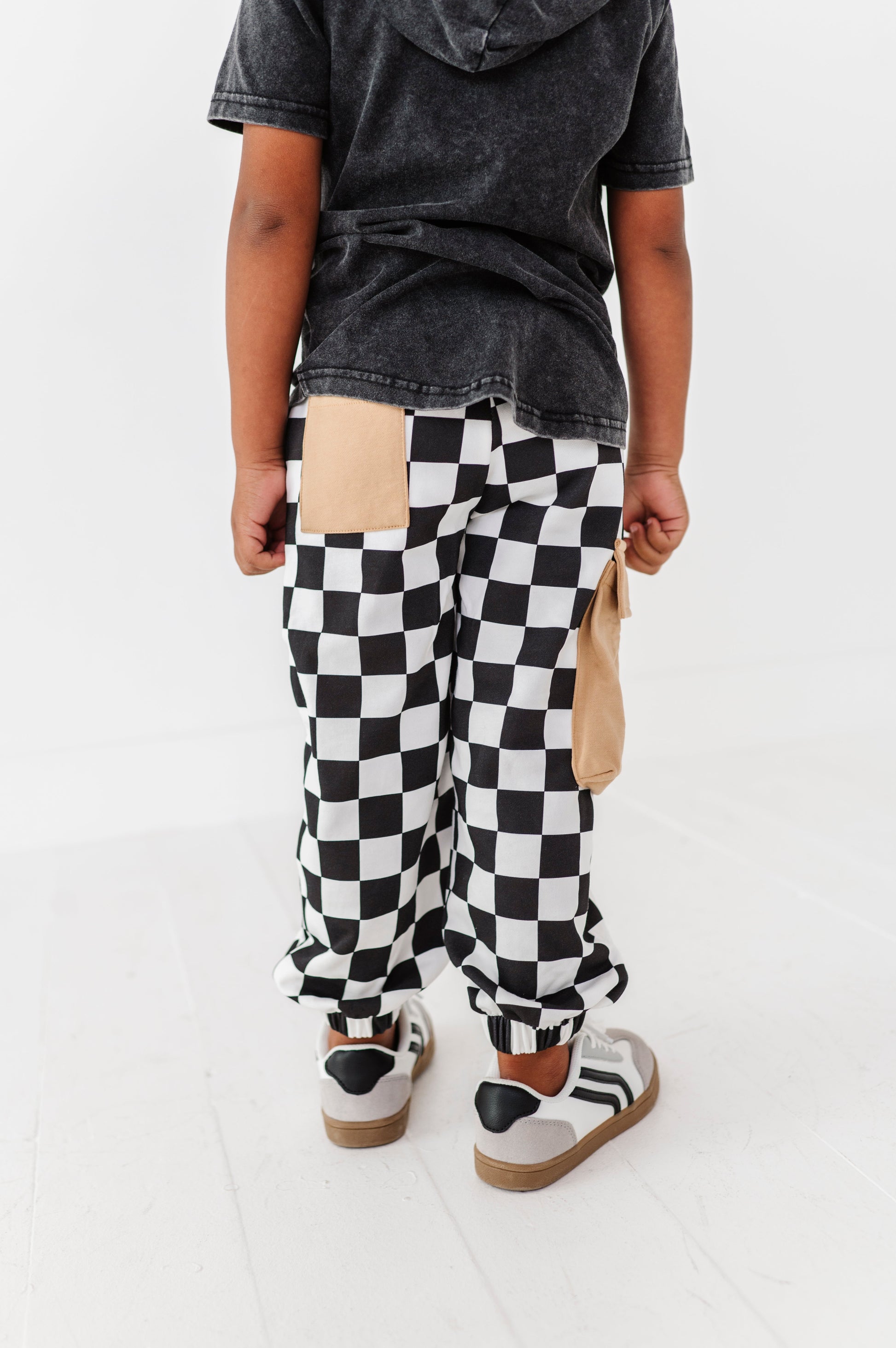 SIZING: Our customers typically find that this style runs TRUE TO SIZE and is intended to fit oversized in the legs with a cinched elastic ankle. If you are inbetween sizes or normally like an even more oversized fit than you see our models wearing you can size up! All of our models in the listing pictures are wearing their true sizes (5T for the blonde boy and 6T for the dark haired boy- he’s in between 6/7 in most clothing)