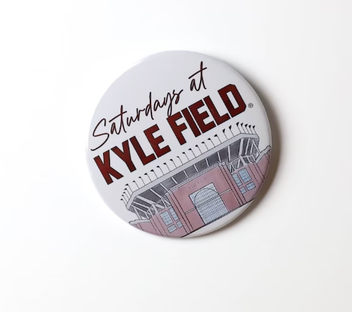 Take your game-day outfit to the next level with this epic 3" Saturdays at Kyle Field button! It's the perfect way to show your Aggie pride and show off your Aggie spirit at the tailgate. Gig 'Em Aggies!