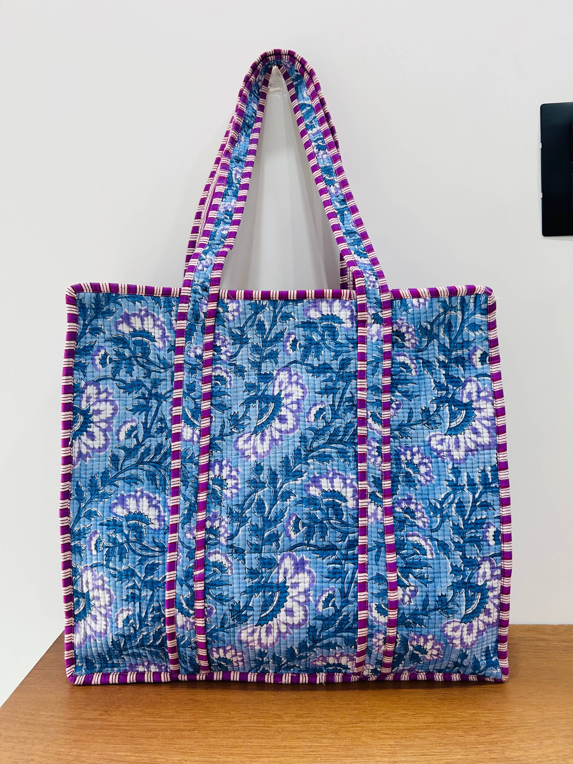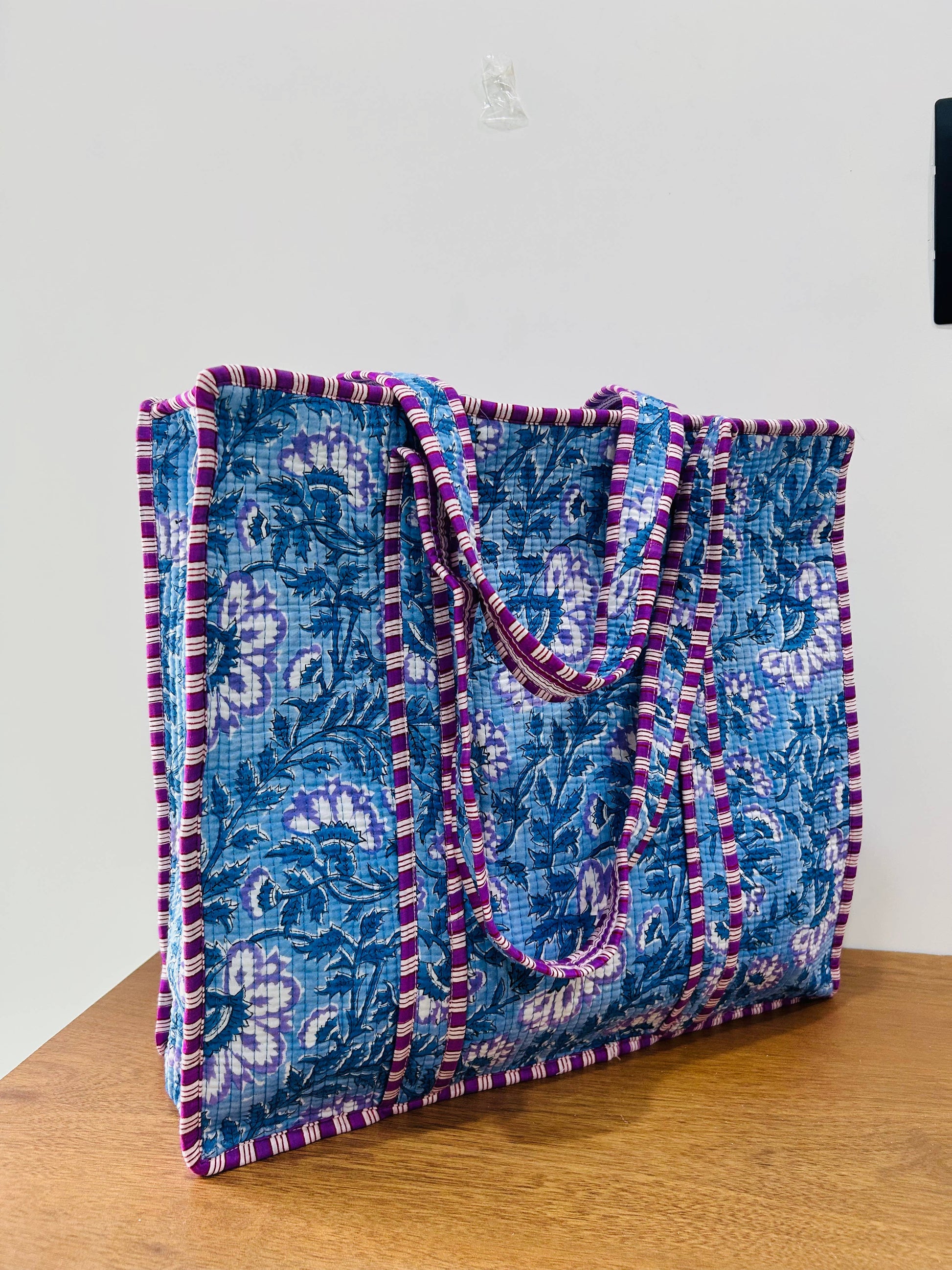 Cotton Quilted Tote Bag Floral Block Print Oversized Bag