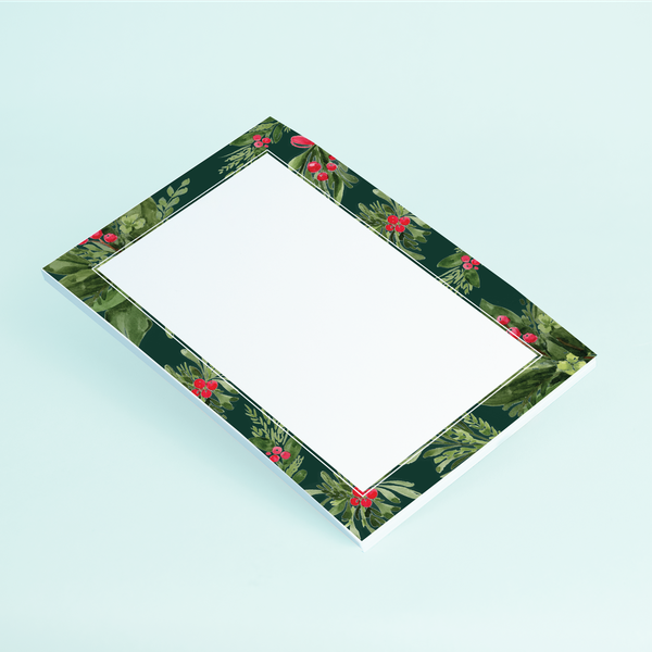 In need of a classic holiday notepad? Look no further than our Dark Holiday Florals notepad. The combination of classic holly and pine makes this the perfect notepad for gifting for any winter holiday.