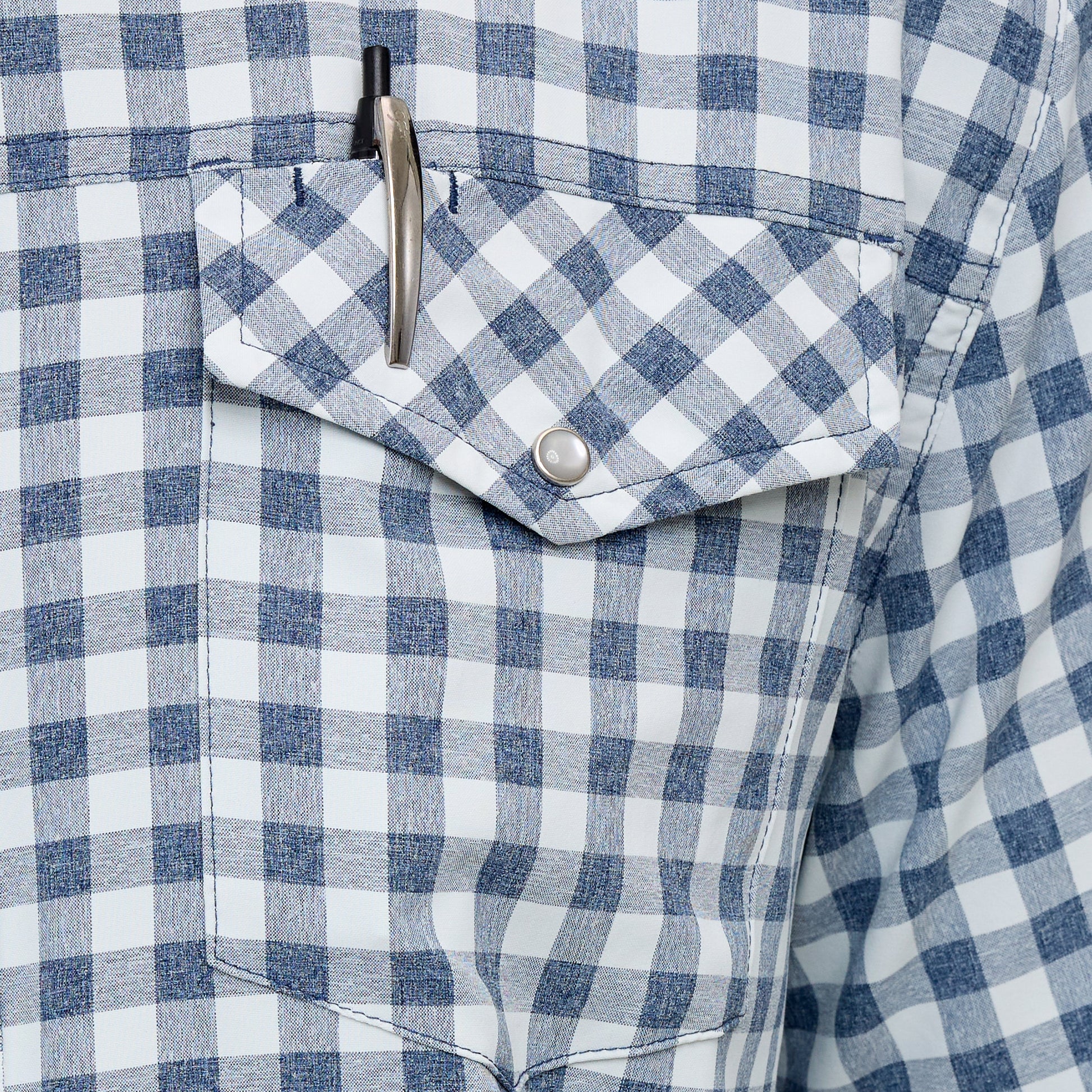 The Pearl Snap Shirt is built for those who demand both functionality and style in their outdoor gear. Crafted from lightweight microfiber with mechanical stretch, it offers superior comfort and flexibility, whether you're fishing, ranching, or horseback riding. With UPF 50+ sun protection, chest pockets for convenient storage, and mesh-lined vertical vents for breathability, this shirt keeps you cool and protected all day long. The quick-drying, wrinkle-resistant fabric ensures you stay fresh through any adventure, while the stain-resistant design keeps it looking sharp. Featuring pearl snaps and a hidden lay-flat collar, this shirt transitions easily from rugged outdoor pursuits to nice dinners, offering performance and style in one versatile package.