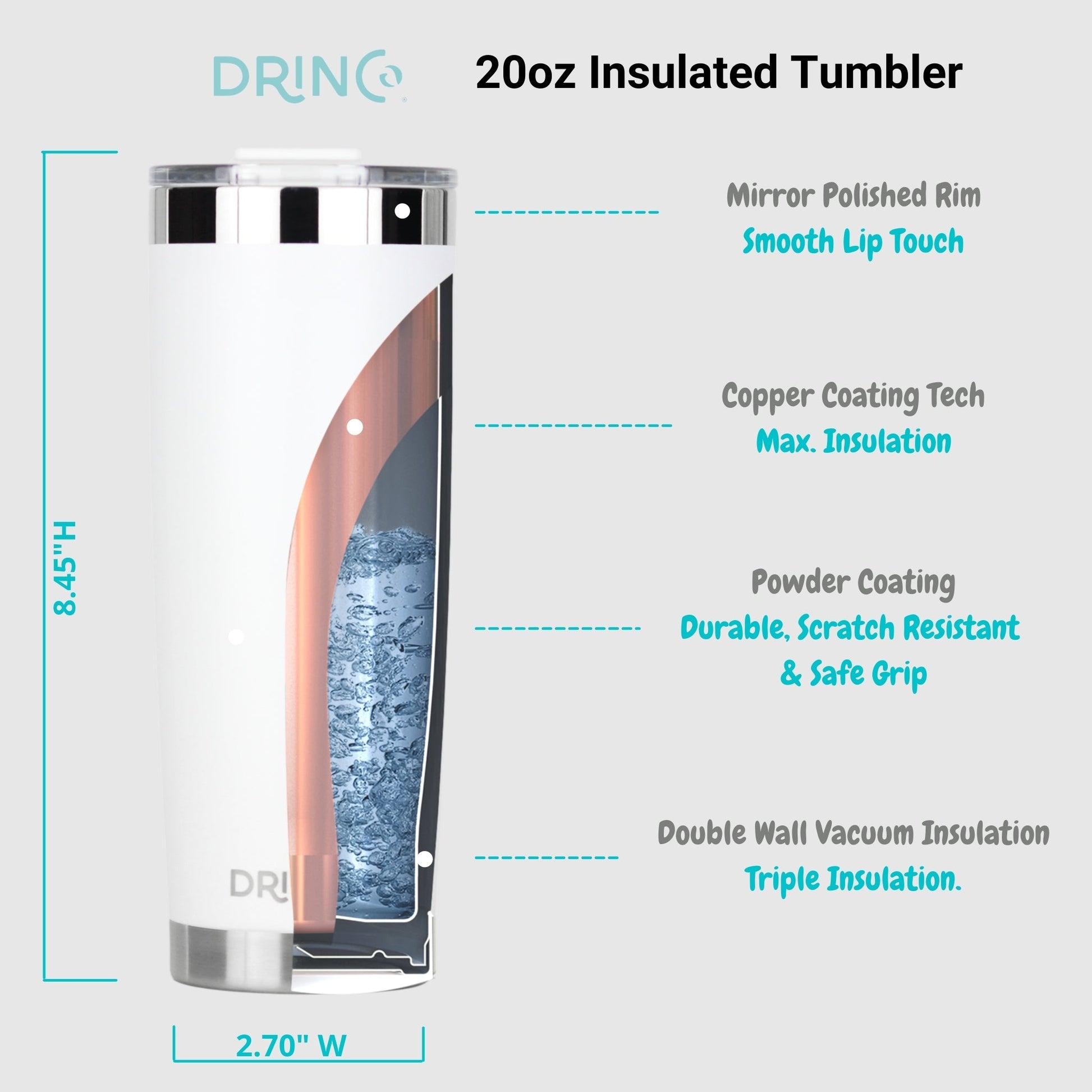 - PREMIUM QUALITY STAINLESS STEEL: The Drinco travel tumbler with straw has been constructed with a sturdy stainless steel (18/8) body a material lauded for its durability. Effective insulation with a see-through removable cap to keep your drinks hot and cold for hours.