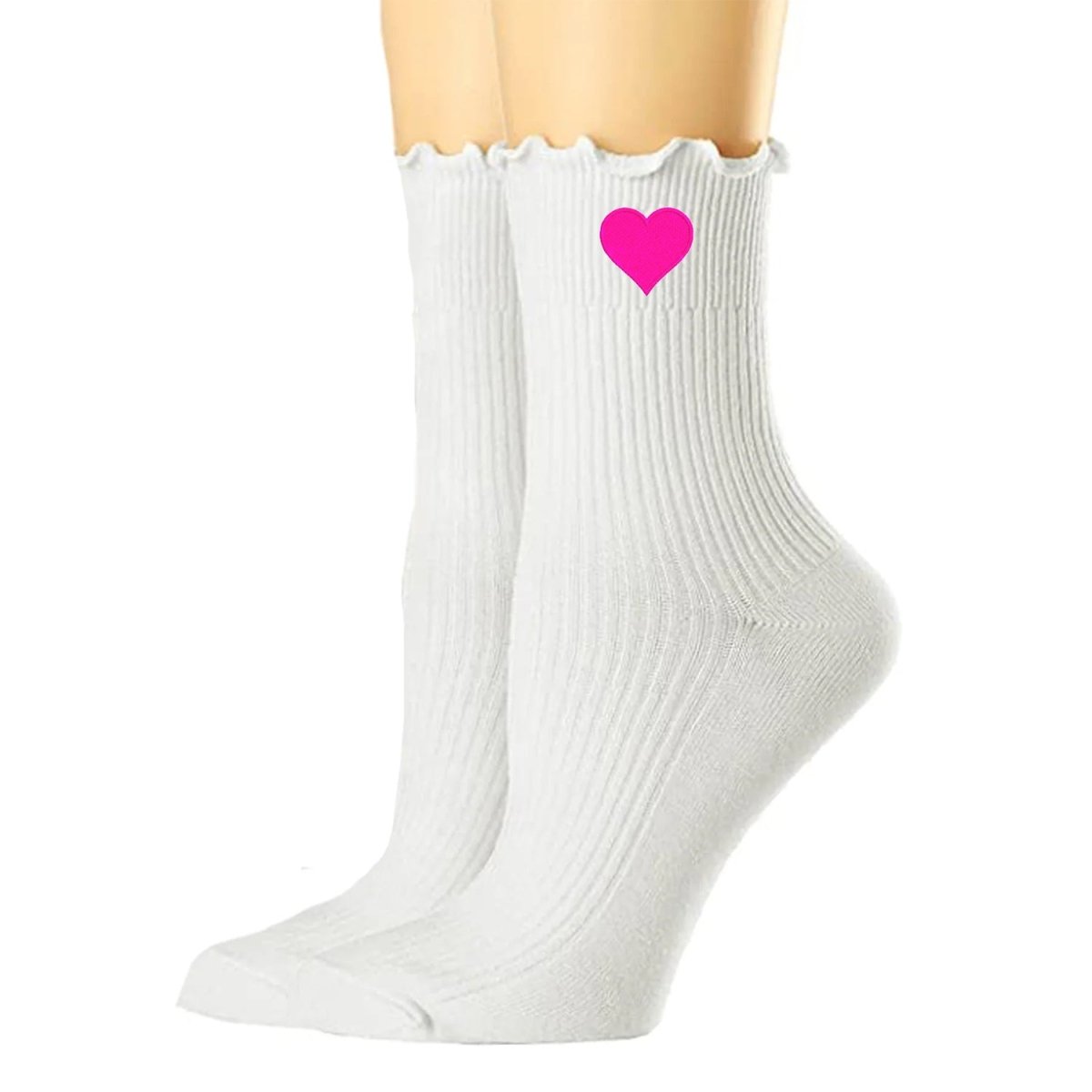 Step up your sock game this Valentine's day (or any day) with our adorable Embroidered Heart Ruffle Socks! These cute socks feature delicate embroidered hearts and playful ruffles, making them the perfect accessory for a romantic date or a casual day out. Show off your personality with every step!