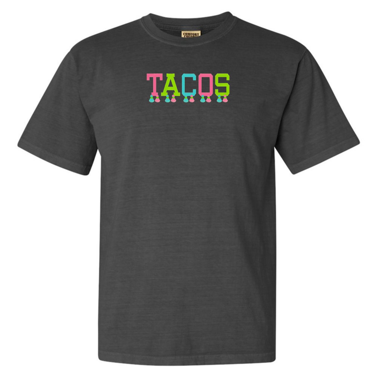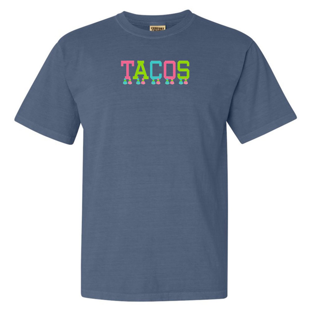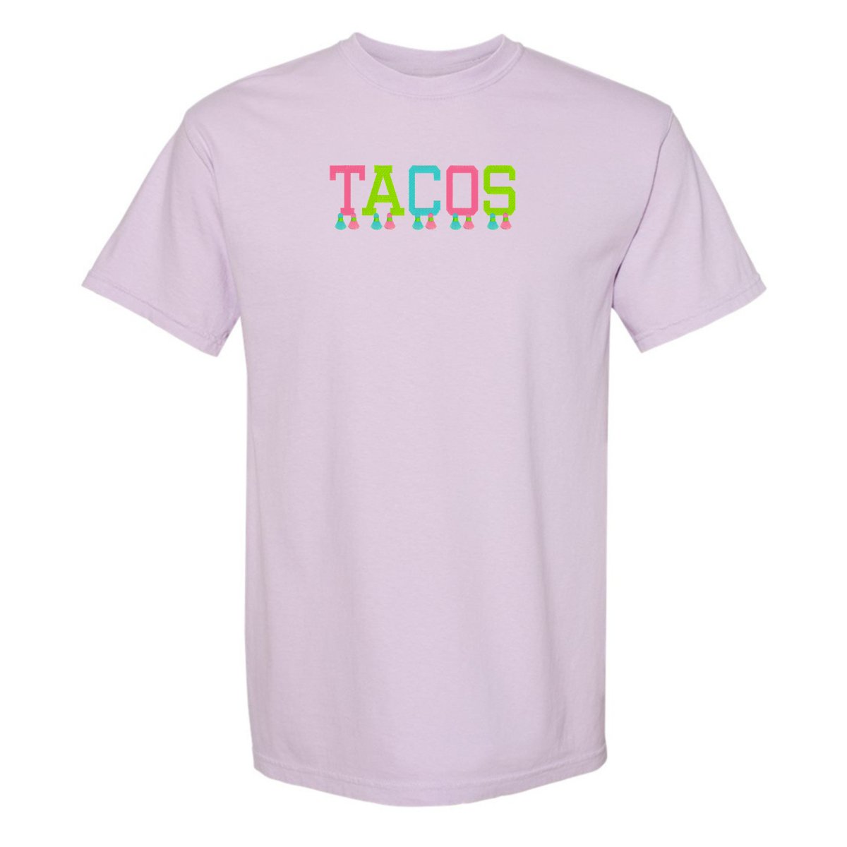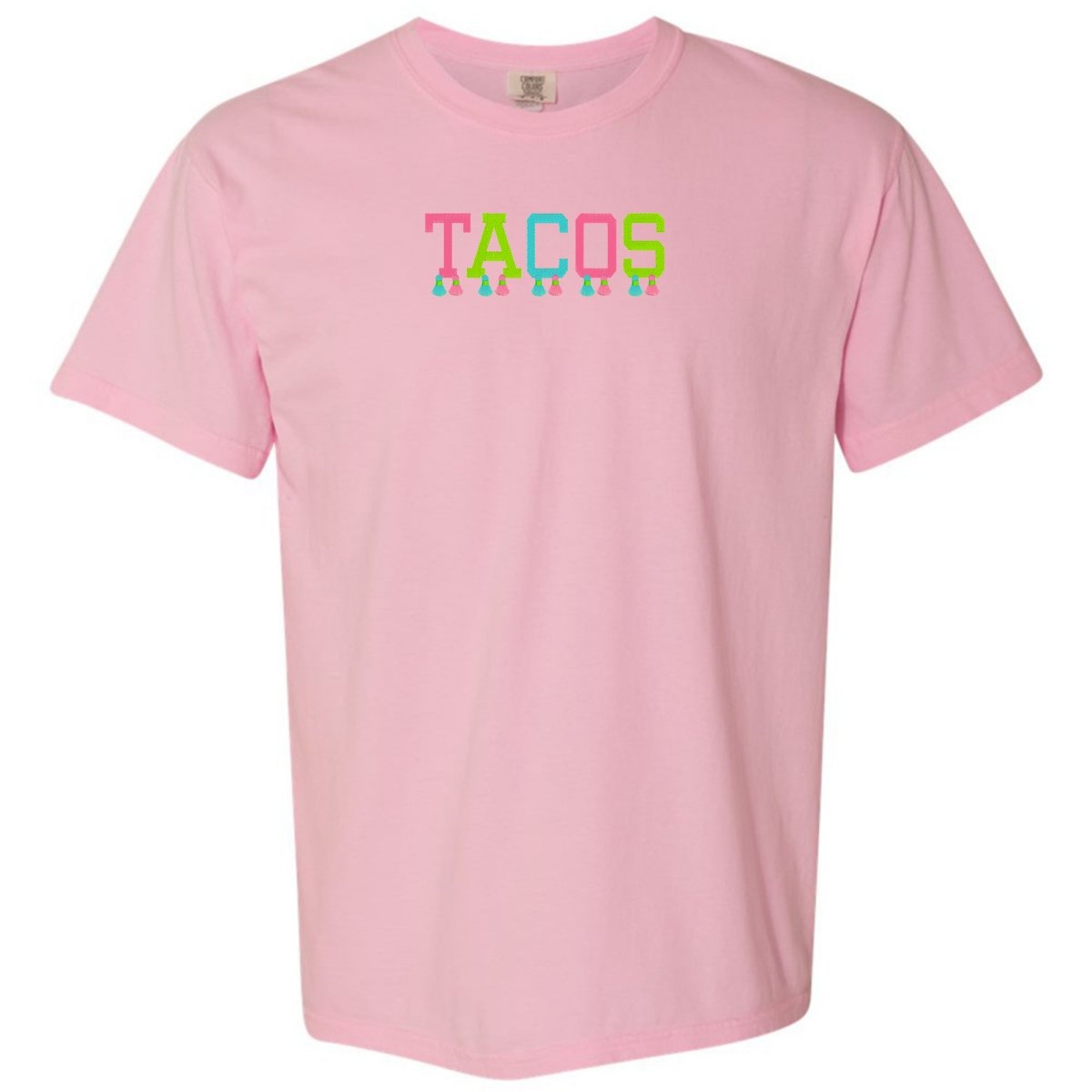 This ultra-wearable 'Comfort Colors' T-Shirt is designed for style & comfort, featuring playful tassels embroidery and a festive 'tacos' design. Perfect for Taco Tuesday with the girls!