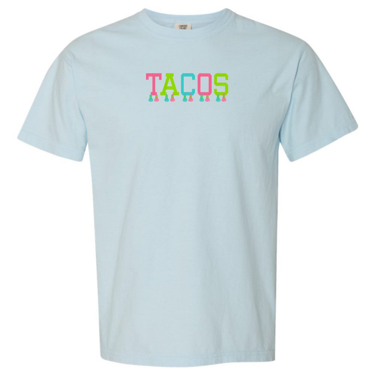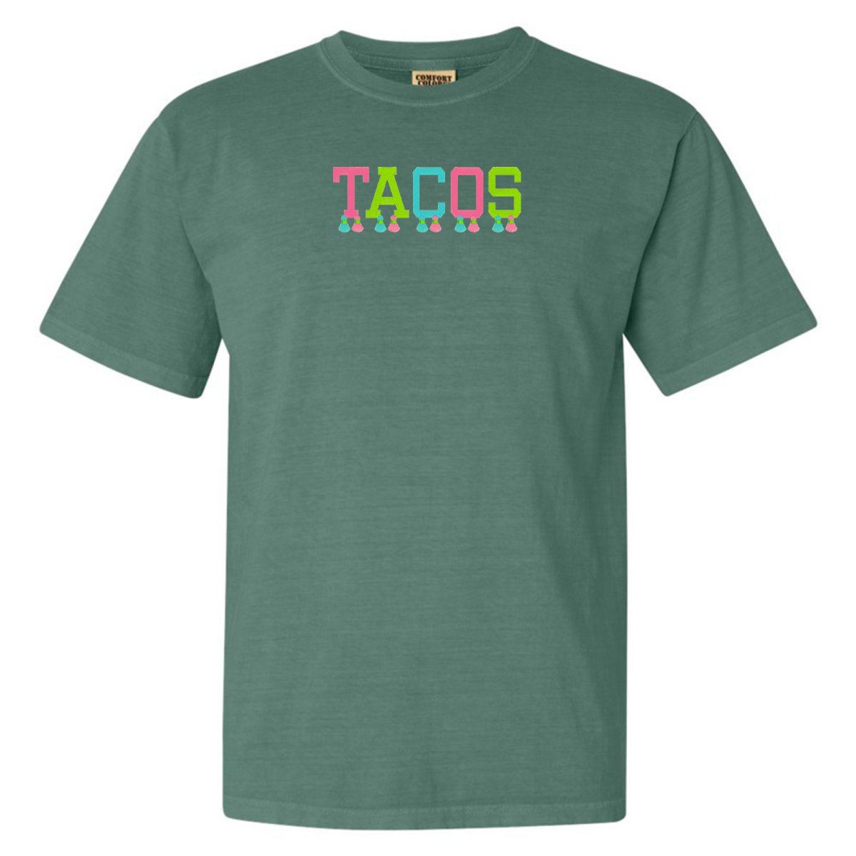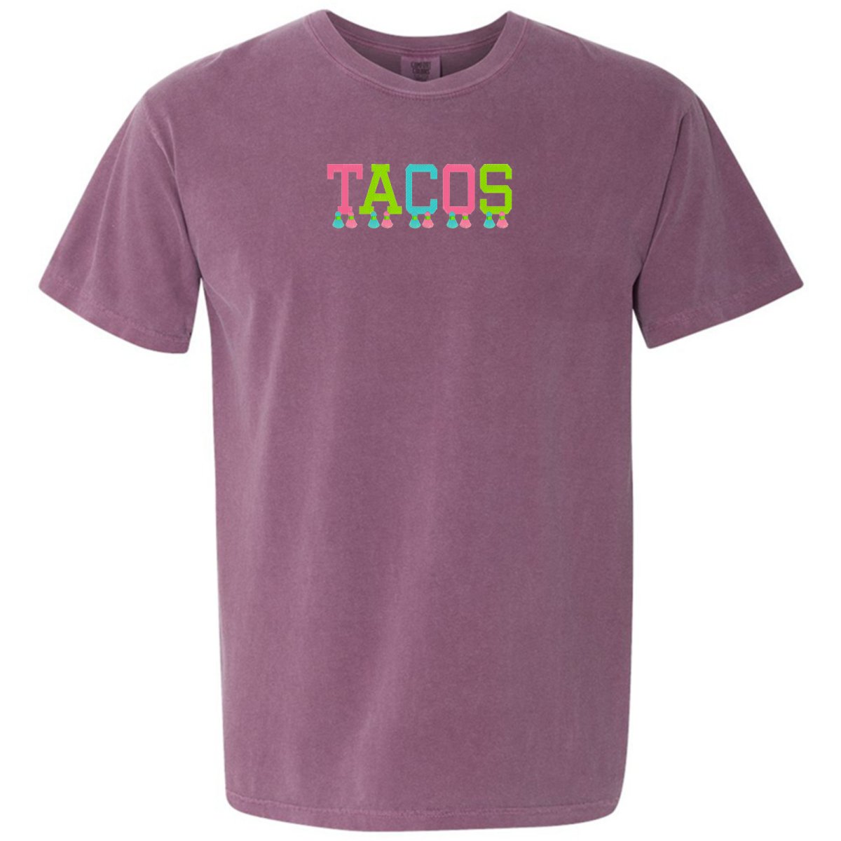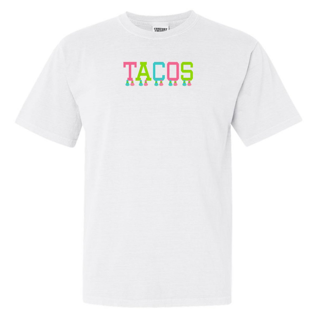 This ultra-wearable 'Comfort Colors' T-Shirt is designed for style & comfort, featuring playful tassels embroidery and a festive 'tacos' design. Perfect for Taco Tuesday with the girls!