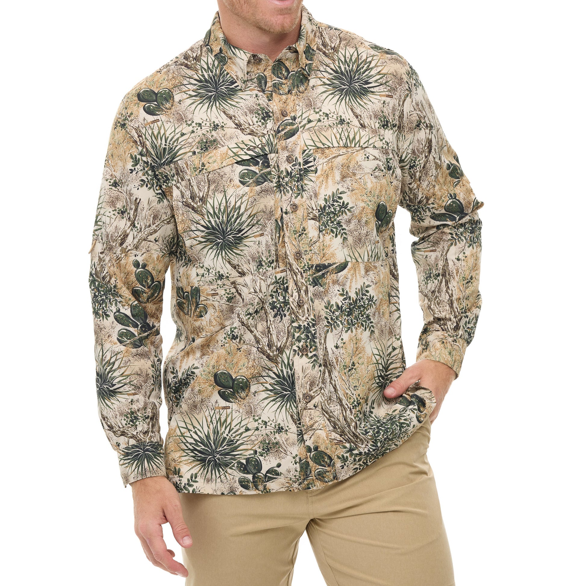 Built for those who thrive in the outdoors, the Original Shirt | Long Sleeve combines comfort and function for your adventures. Made from lightweight microfiber with UPF 50+ sun protection, it shields you from the elements while keeping you cool with mesh-lined vents at the chest and back. Quick-drying and wrinkle-resistant, this shirt is perfect for the unpredictable demands of hunting, fishing, or outdoor exploration. Hidden chest pockets and a bungee loop system add secure storage and versatility, while stain resistance ensures durability in rugged conditions. With a hidden lay-flat collar and tagless design, it offers a polished, no-fuss fit that transitions effortlessly from the field to the lodge.