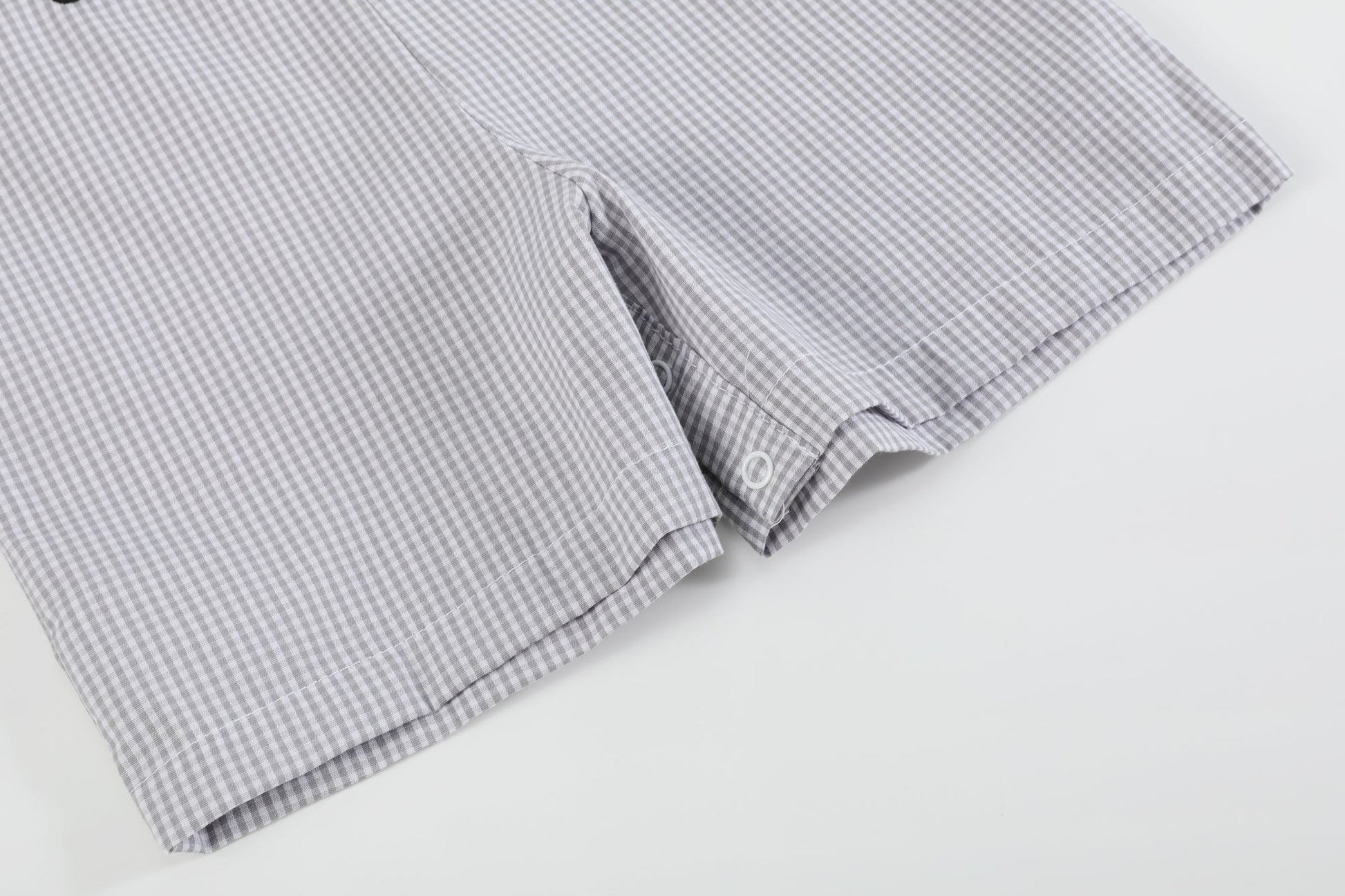 Grey Gingham Puppies in Truck Shortalls