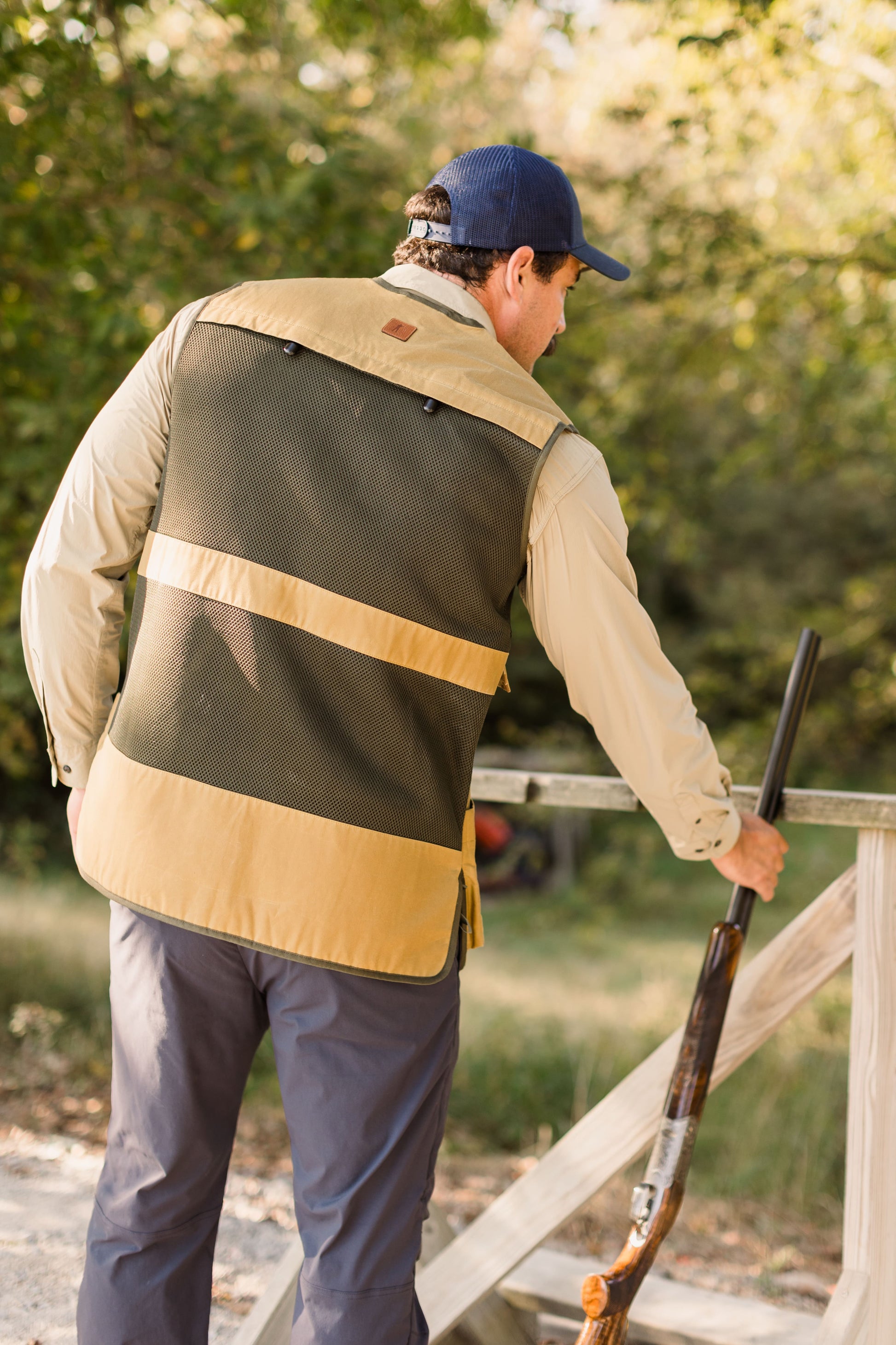 A great clays vest can make the difference between winning and losing when it counts. When we set out to create the perfect clays vest we spoke with a group of accomplished clays shooters to understand what they needed when they stepped into their “office”. We learned the following–they wanted easy-access shell pockets with an easy way to dump empties, a smooth yet grippy pad for the stock of their gun to find purchase on every shot with confidence, use of lightweight and breathable fabrics for warm days, a place to hold a towel and ear protection when not in use, and a way to clip on their competition numbers without looking dorky.