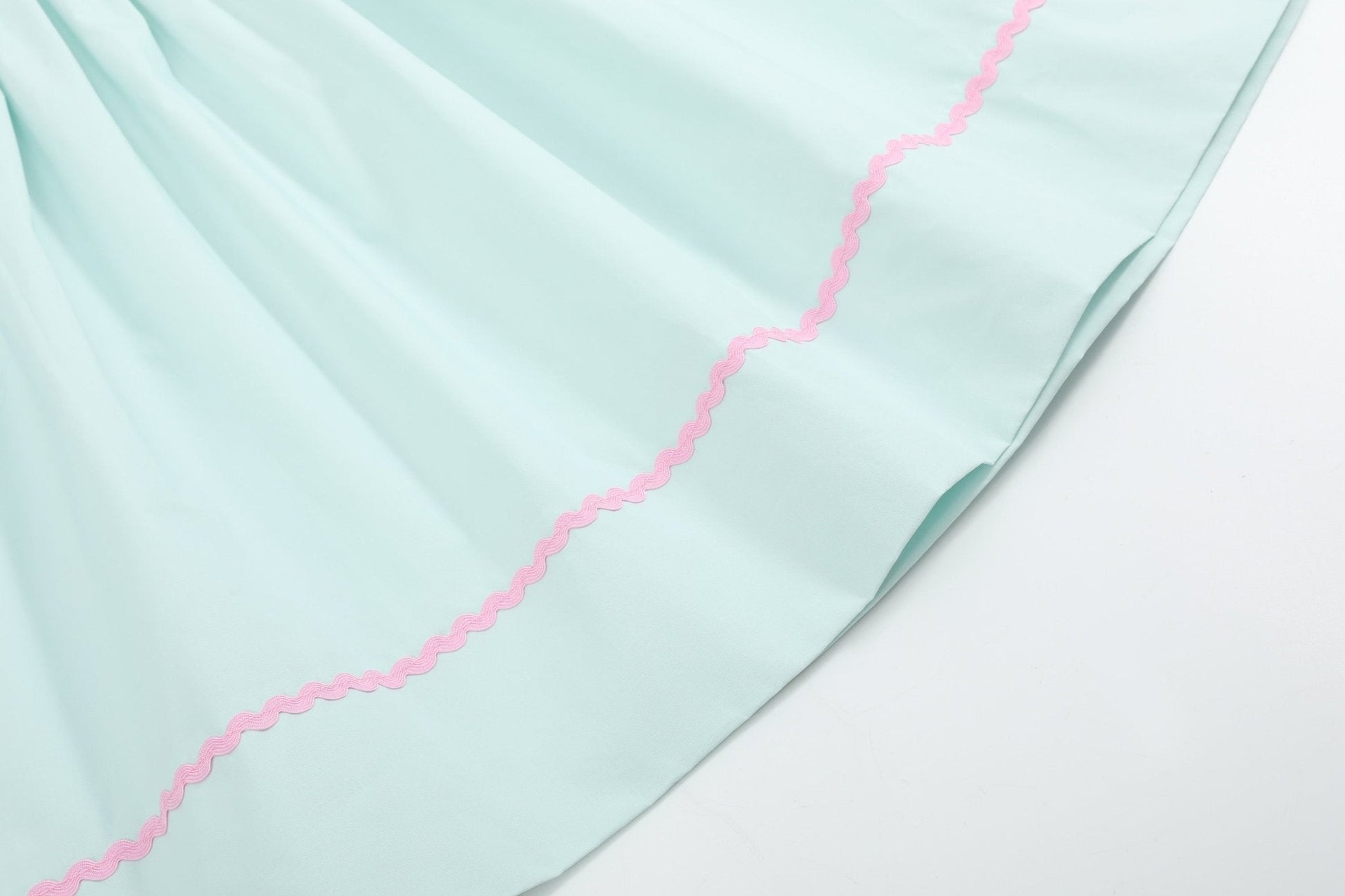The Misty Blue Easter Bunny Smocked Bishop Dress is a sweet and timeless choice for spring celebrations. Featuring a beautiful smocked neckline embroidered with adorable Easter bunnies, this classic bishop dress is crafted from 100% soft cotton for comfort and breathability. The gentle misty blue hue adds a soft, seasonal touch, making it perfect for Easter services, egg hunts, family gatherings, and springtime photos. Designed for twirling and all-day wear, this charming dress is sure to become a treasured favorite.