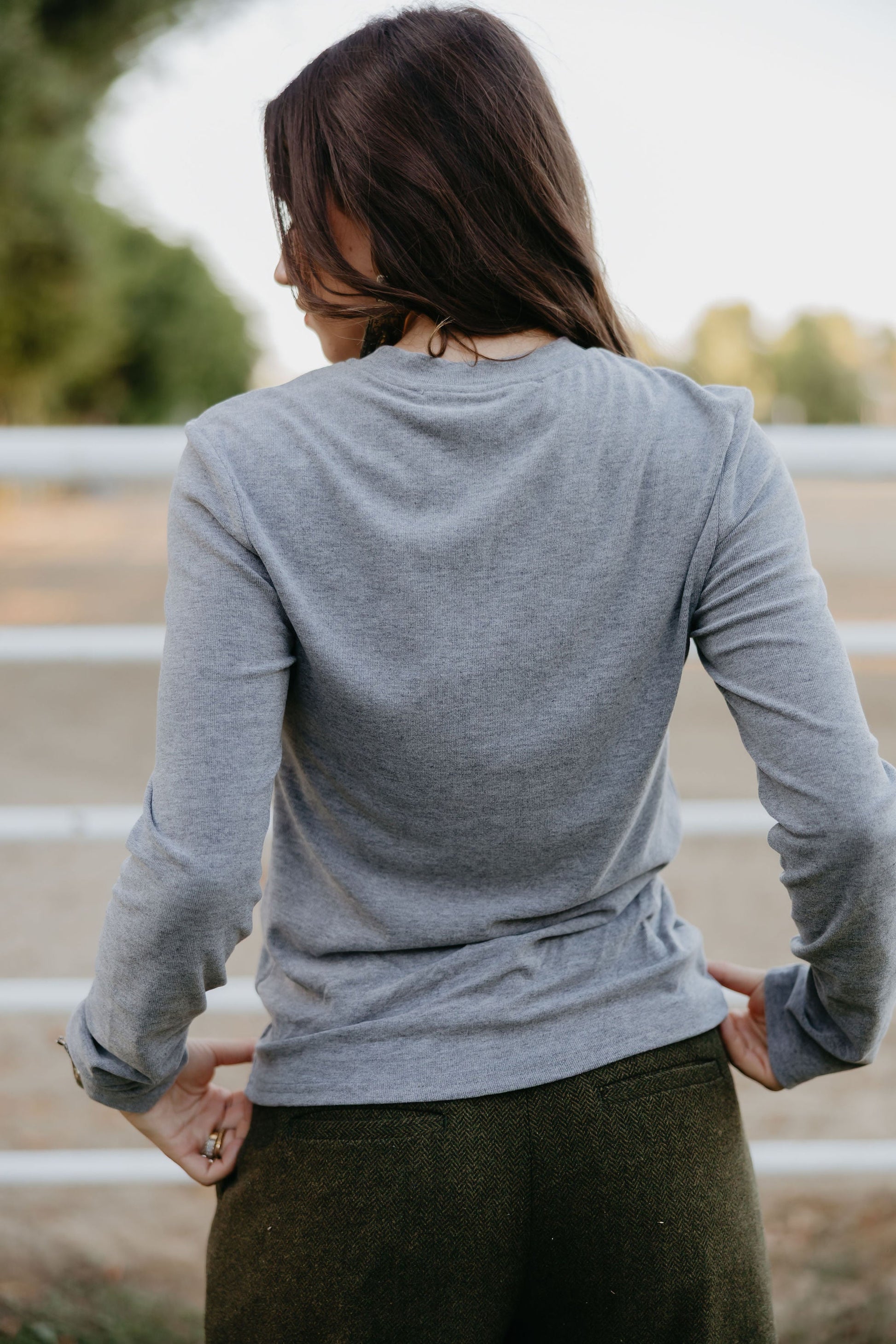 The Nevada Rose is a timeless classic with a soft Western touch. In light gray with a single rose blooming on the shoulder, it’s a simple yet striking piece that captures the spirit of the range and the quiet strength of a cowgirl in full bloom.