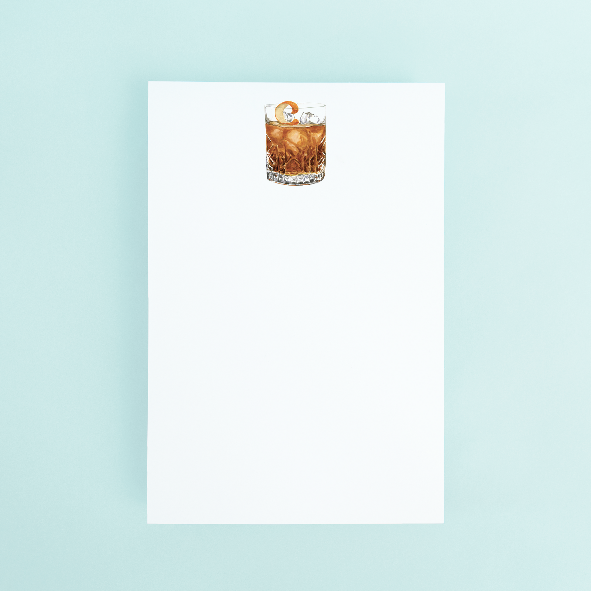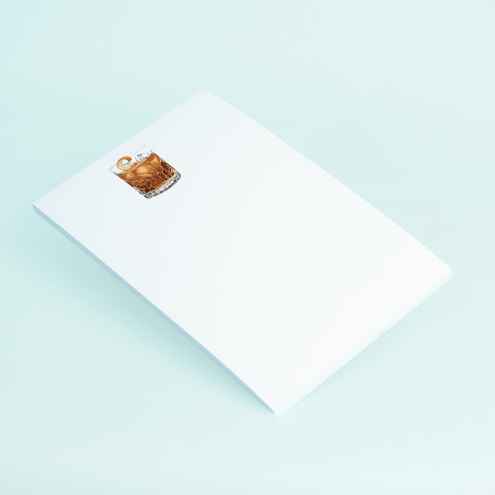 Whether you're a writer, an artist, or just someone who appreciates sophisticated designs, this notepad is a must-have addition to your stationery collection. Experience the joy of creativity with this elegant notepad and let the double old fashioned and decanter watercolor design inspire you.