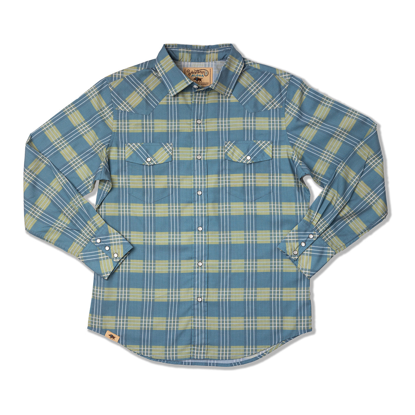 A palaka is a two-color yarn-dyed plaid, traditionally a combination of white with blue, brown, or red as the second color. Our Palaka "Nui" (meaning large/many/great) doubles the size of the plaid and combines at least two other colors - often a combination of traditional palaka colors. The fabric also is printed instead of yarn dyed, allowing for a relaxed, sun-faded look.