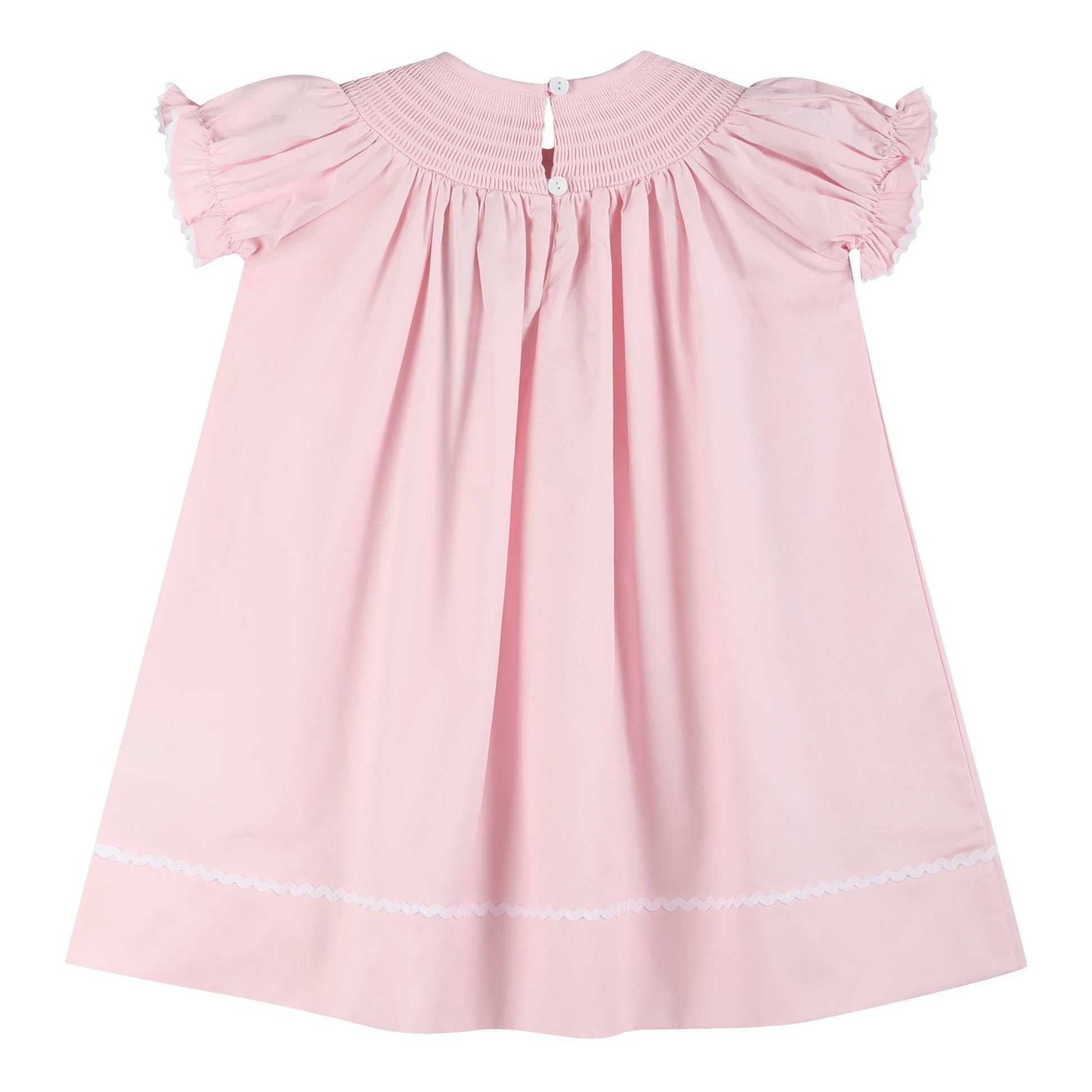 Timeless elegance meets sweet simplicity in our Pink and White Smocked Bishop Dress. Crafted from soft, high-quality pink cotton, this classic bishop-style dress features delicate smocking along the neckline and charming puff sleeves. The smocking is beautifully detailed with white details, creating a graceful silhouette that's both comfortable and stylish for little girls.