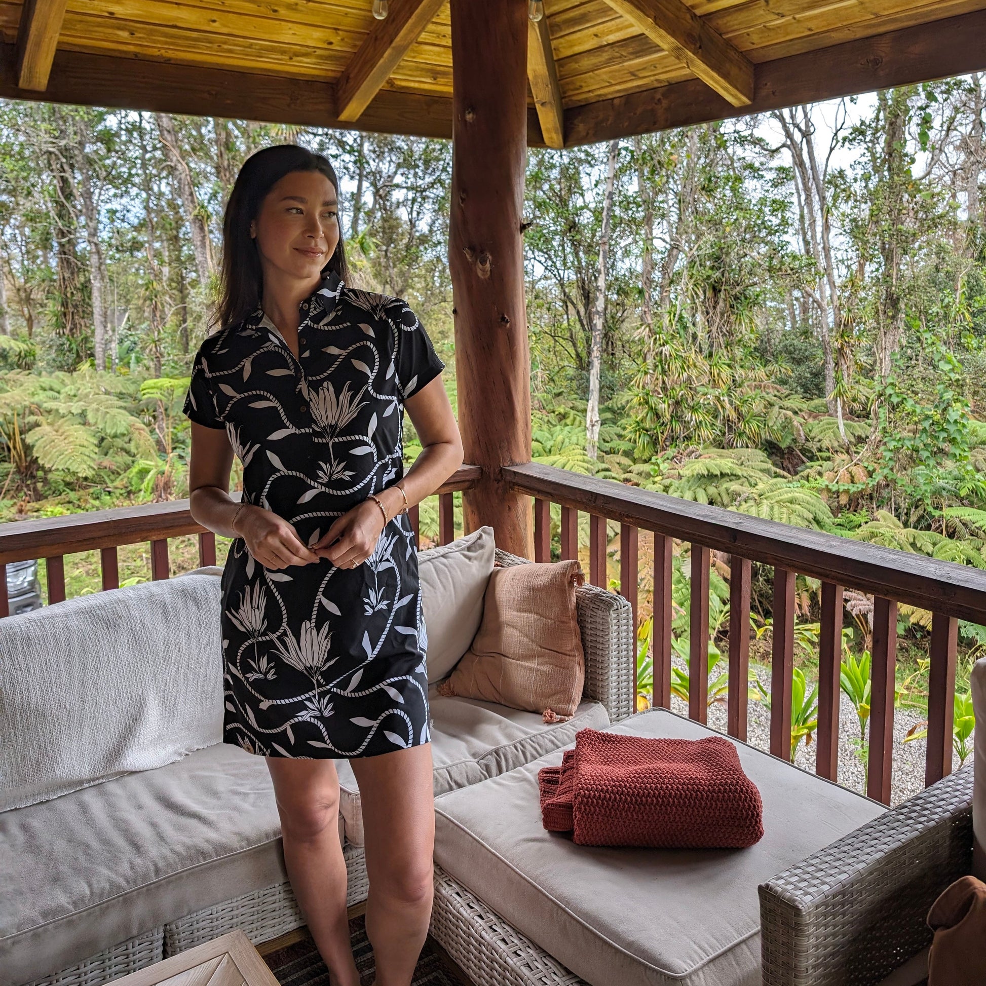 Placket Dress Recycled Poly Ti Leaf Pareu