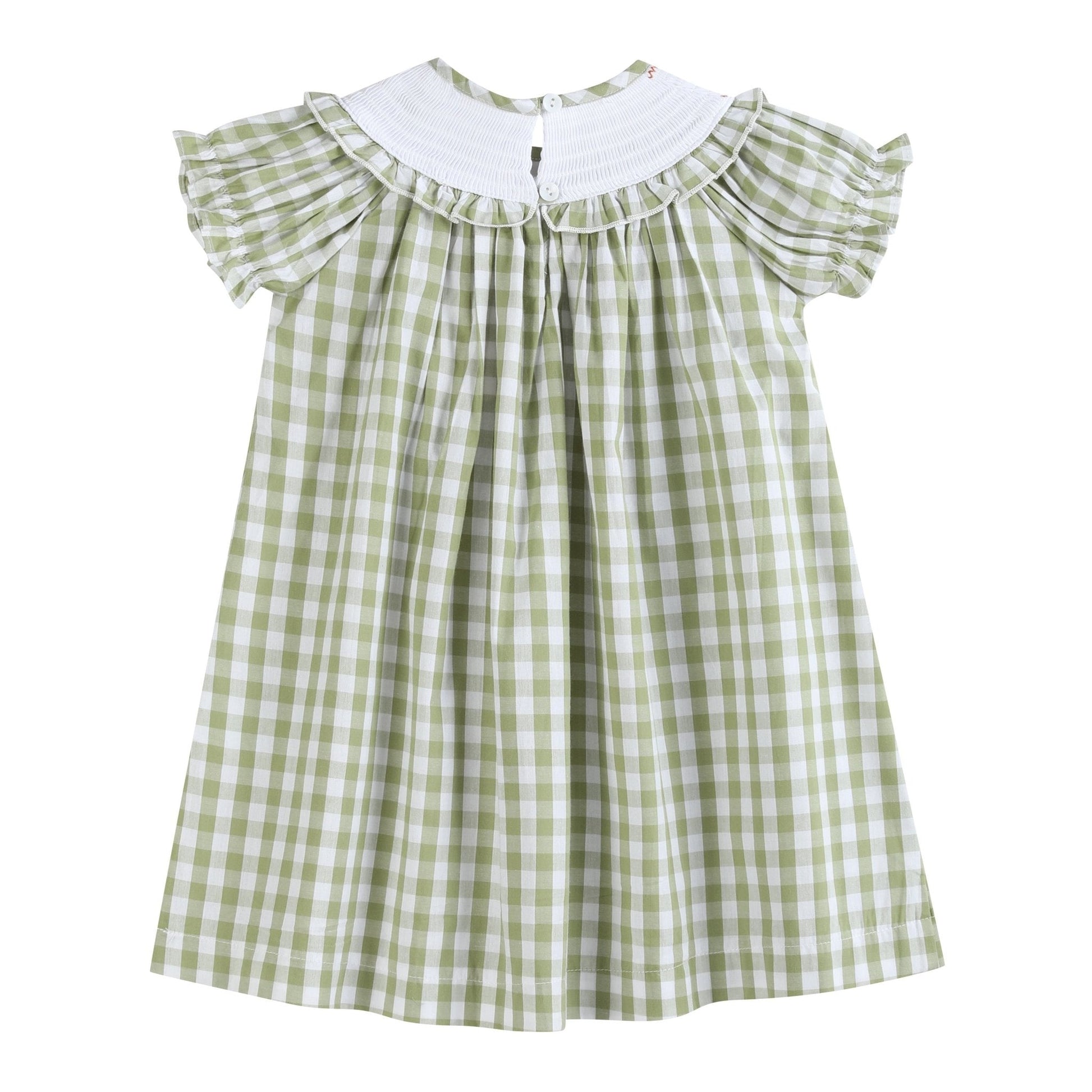 Sage Green Gingham Pumpkin Smocked Bishop Dress
