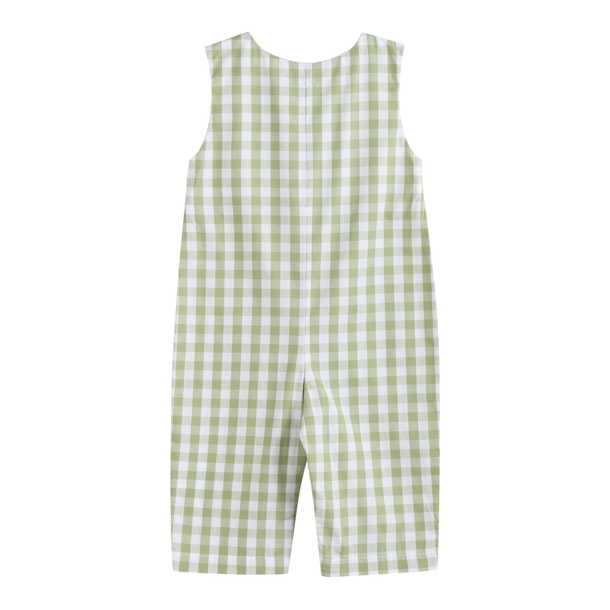 Sage Green Gingham Pumpkin Smocked Overalls