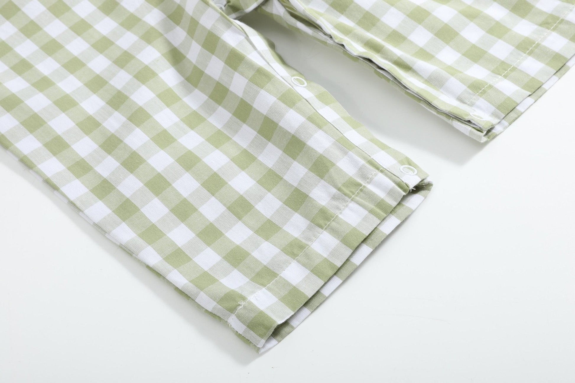 Your little pumpkin will look adorable in these Sage Green Gingham Pumpkin Smocked Overalls. Made from 100% cotton, this classic fall style features a smocked panel with embroidered pumpkins and a soft sage green gingham fabric. Adjustable shoulder buttons provide room to grow, while snaps at the crotch make changes easy and quick.