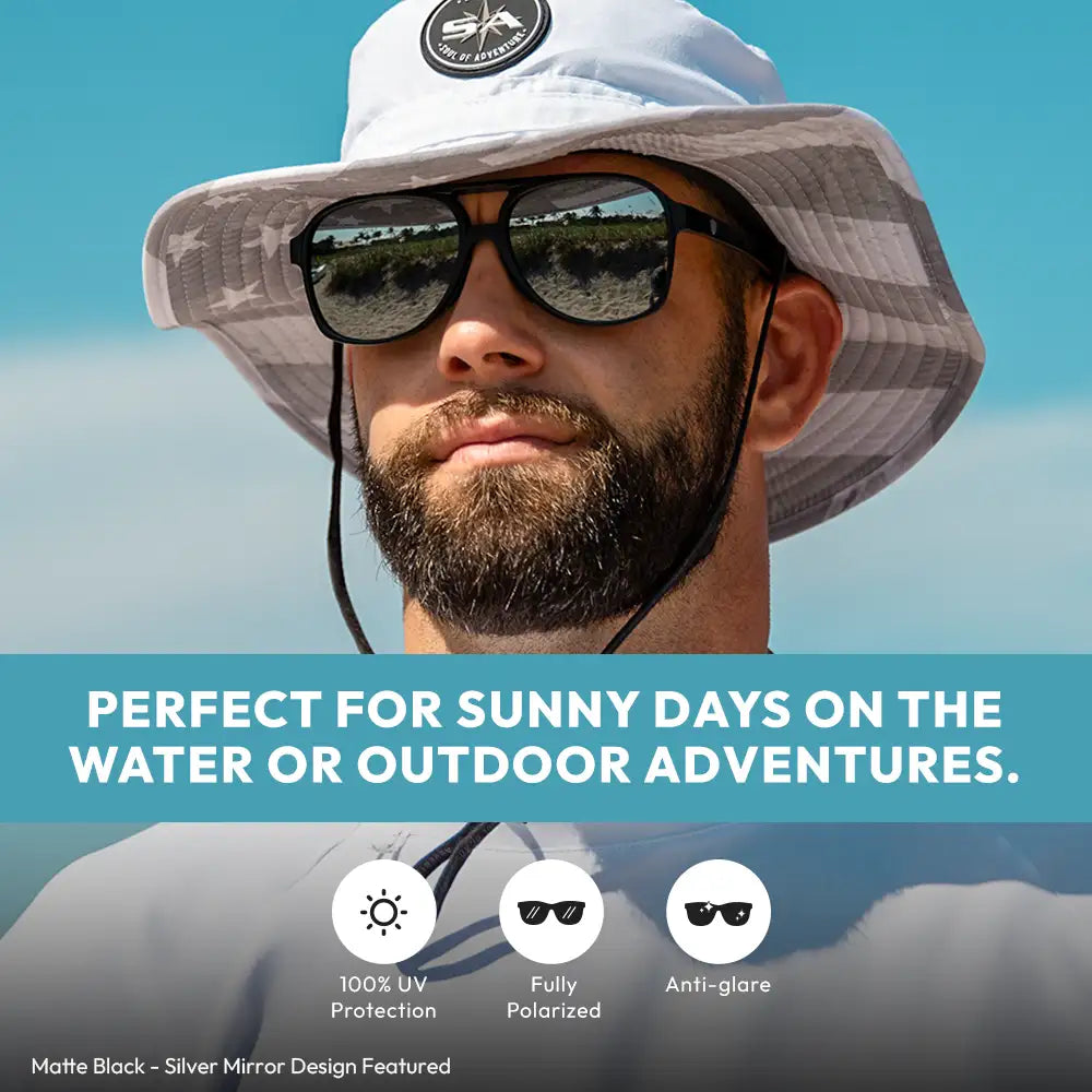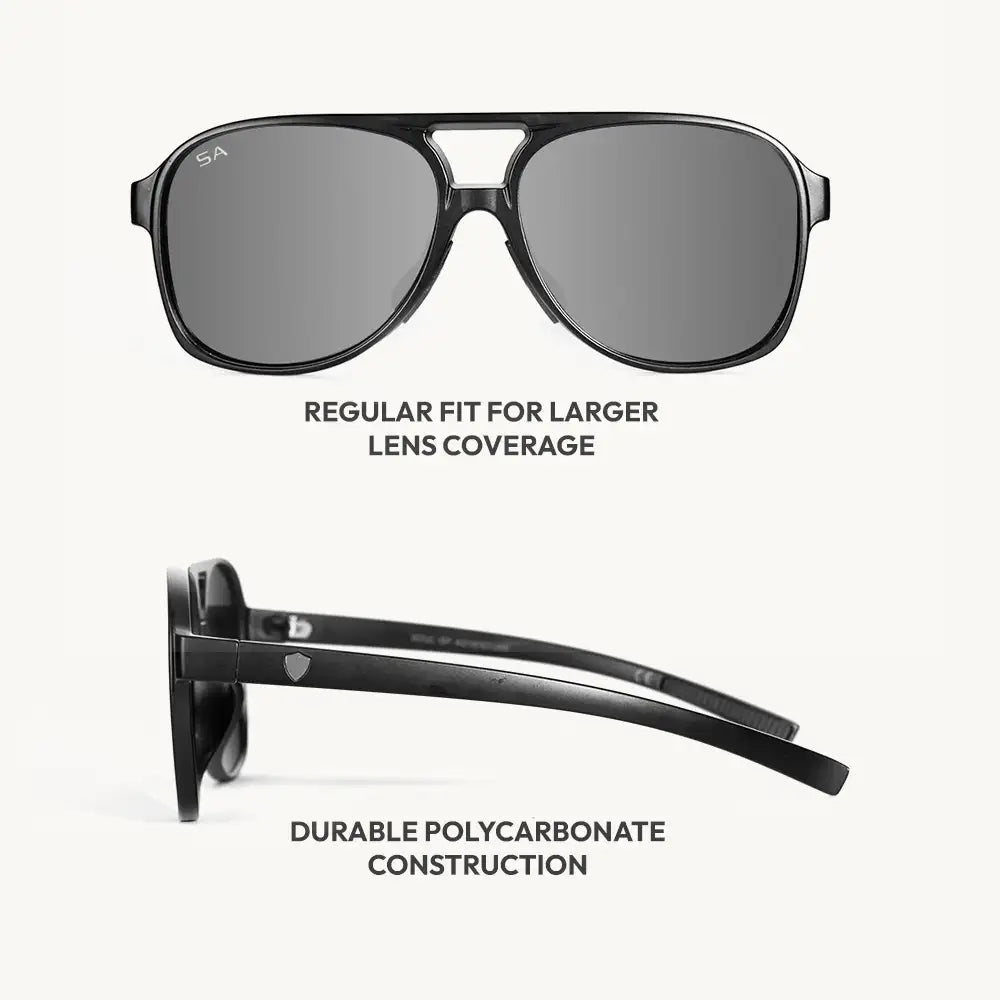 The Sport Aviator seamlessly blends iconic classic style with a modern twist. Designed with a regular fit for larger lens coverage, these sunglasses feature a durable polycarbonate construction. The fully polarized lenses offer 100% UV protection and anti-glare properties, making them perfect for sunny days on the water or outdoor adventures.