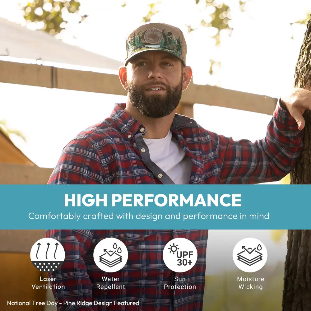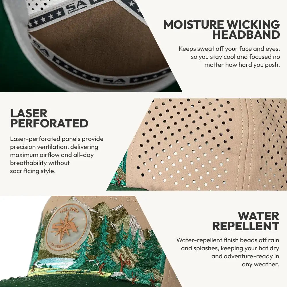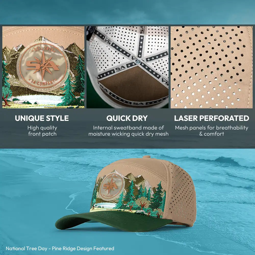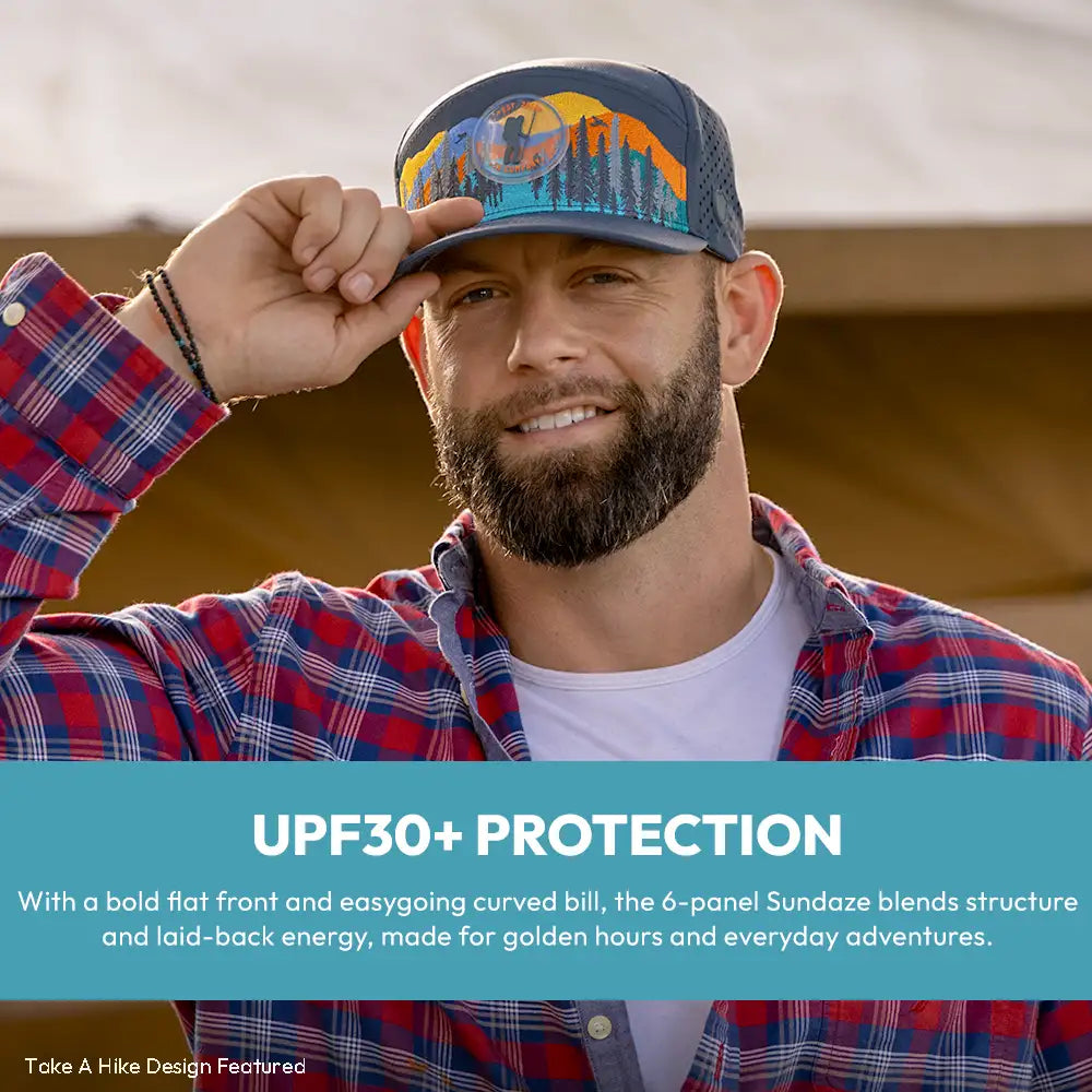 With a bold flat front and easygoing curved bill, the 6-panel Sundaze blends structure and laid-back energy, made for golden hours and everyday adventures. Water-repellent, laser-perforated sides, and a moisture-wicking sweatband keep you cool, dry, and moving freely.
