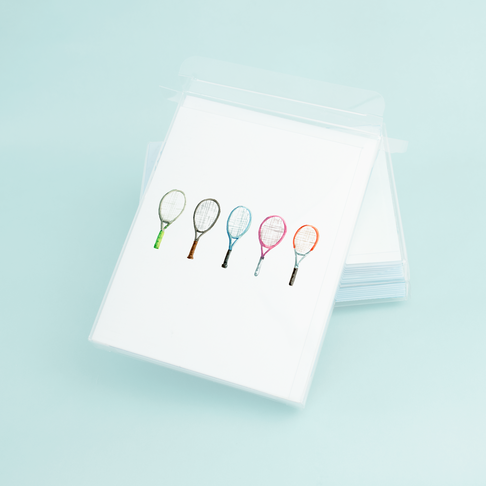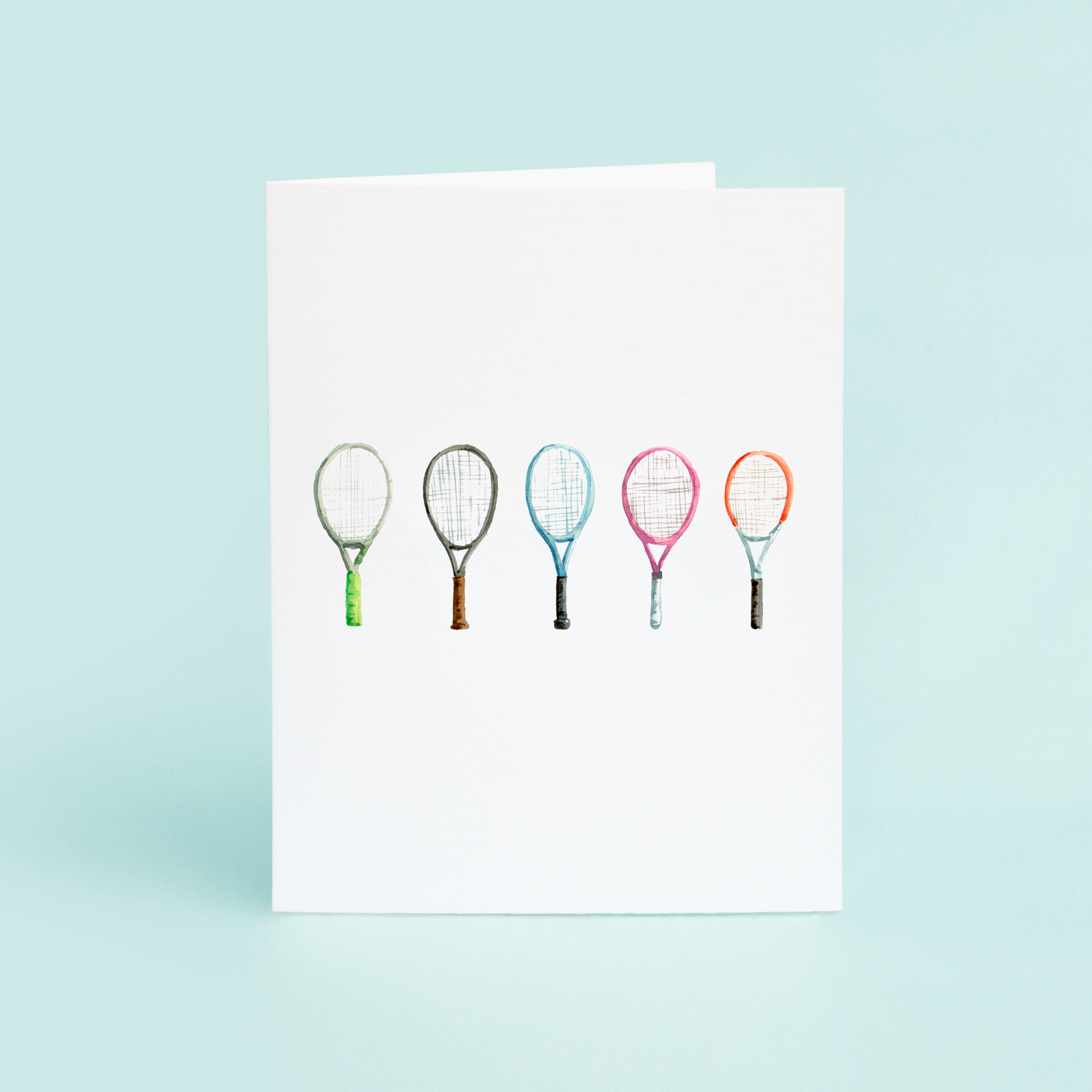 Ace your greetings with this watercolor tennis racket card. Your recipient will fall in LOVE with these colorful rackets. Get ready for your match with the perfect courtside stationery.