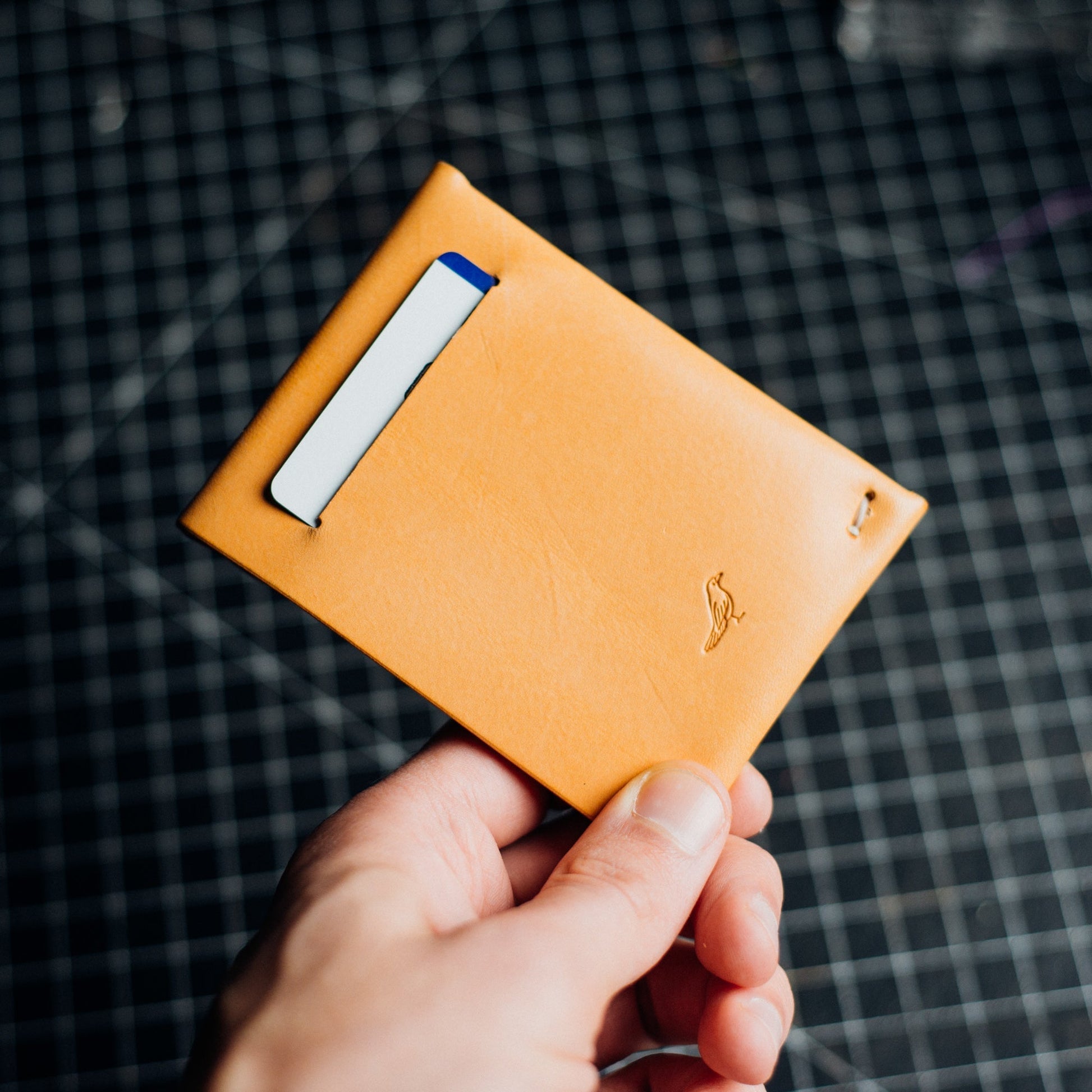 The Archer is a sleek, minimally styled vertical wallet designed to securely hold cards and unfolded cash, while staying slim in the pocket.