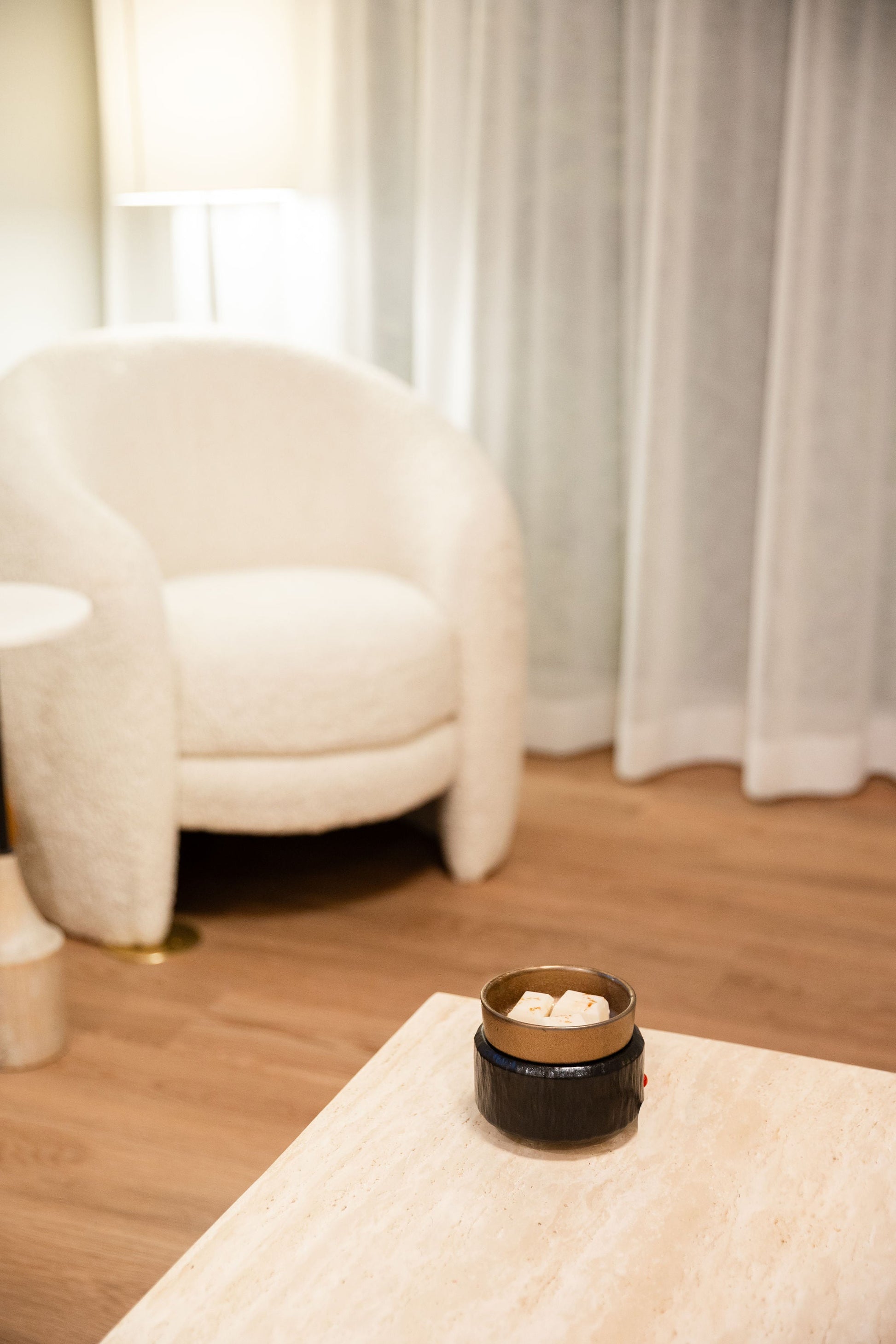 Wax melts are a great alternative to candles, especially for spaces where an open flame is not wanted, ideal, or allowed. The bend and snap bar has breakable sections and a gold design made with natural color pigments derived from minerals.