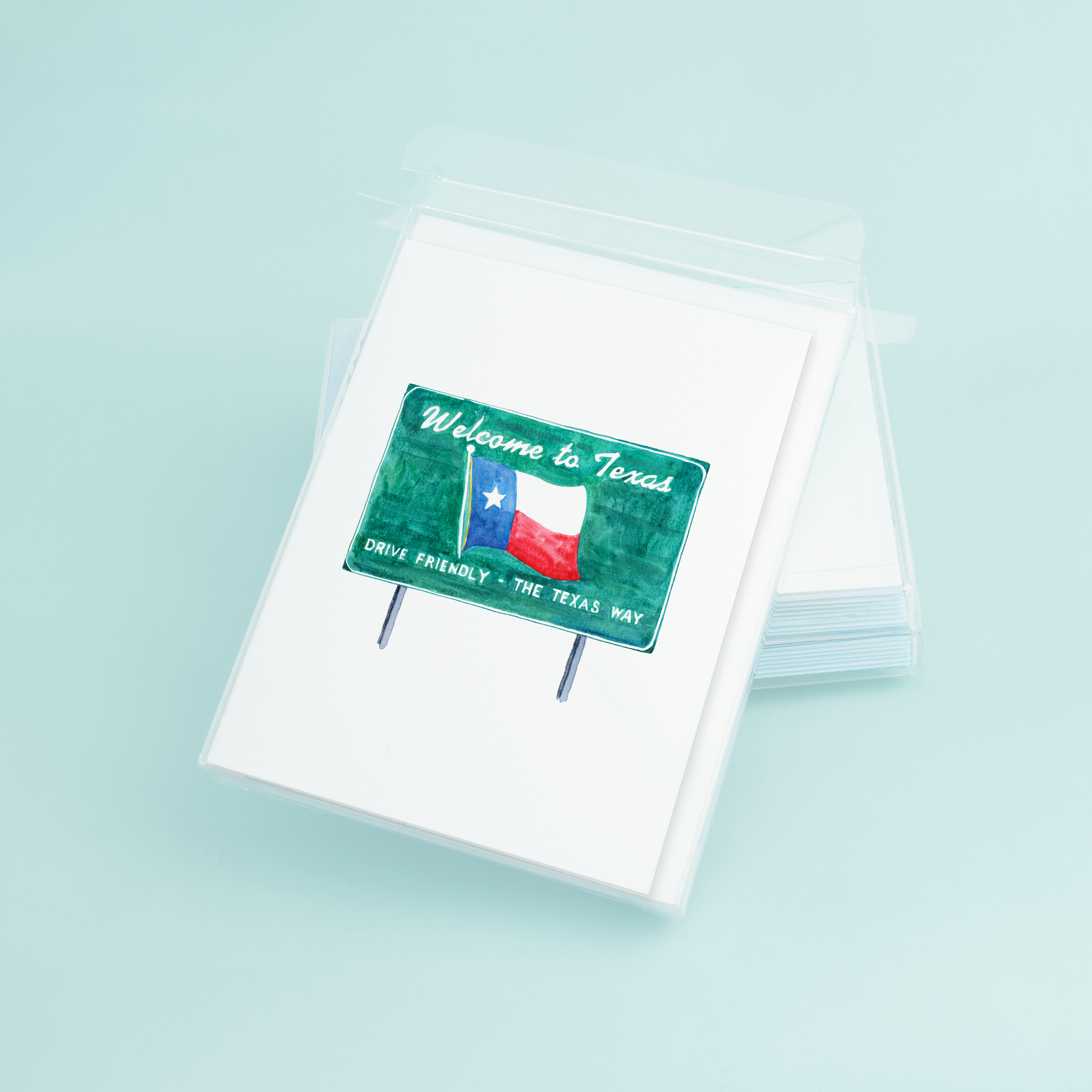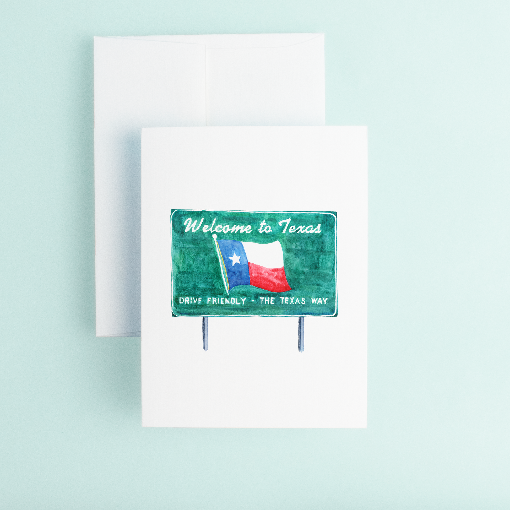 Introducing the eco-friendly A2 greeting card, beautifully crafted from linen cardstock and adorned with an original watercolor design by the talented Dallas-based artist Taylor Paladino. The front of the card features a stunning illustration of the iconic "Welcome to Texas" sign, with intricate details and bold lettering that capture the spirit of this great state.