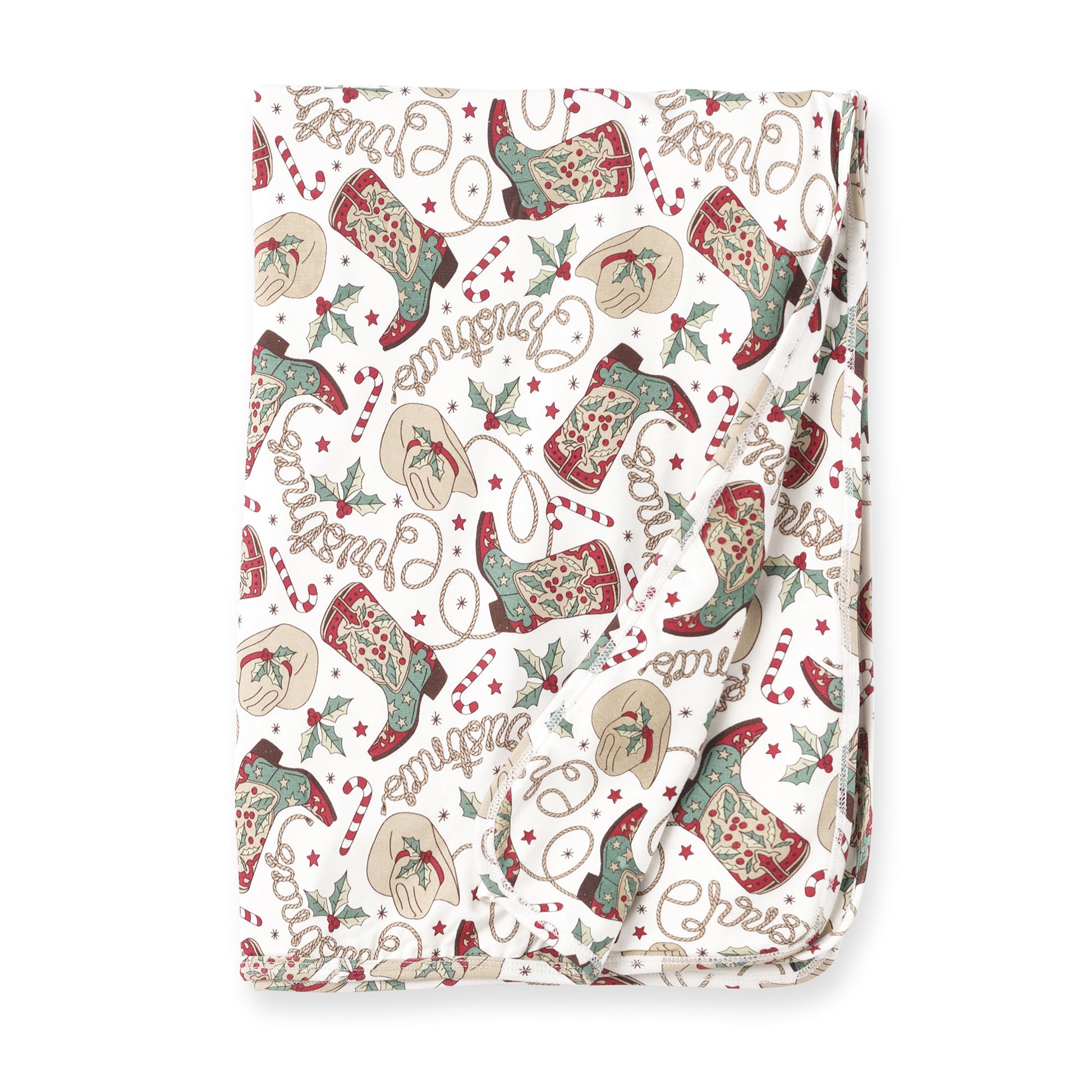 Western Christmas Stroller Blanket – Soft Bamboo Holiday