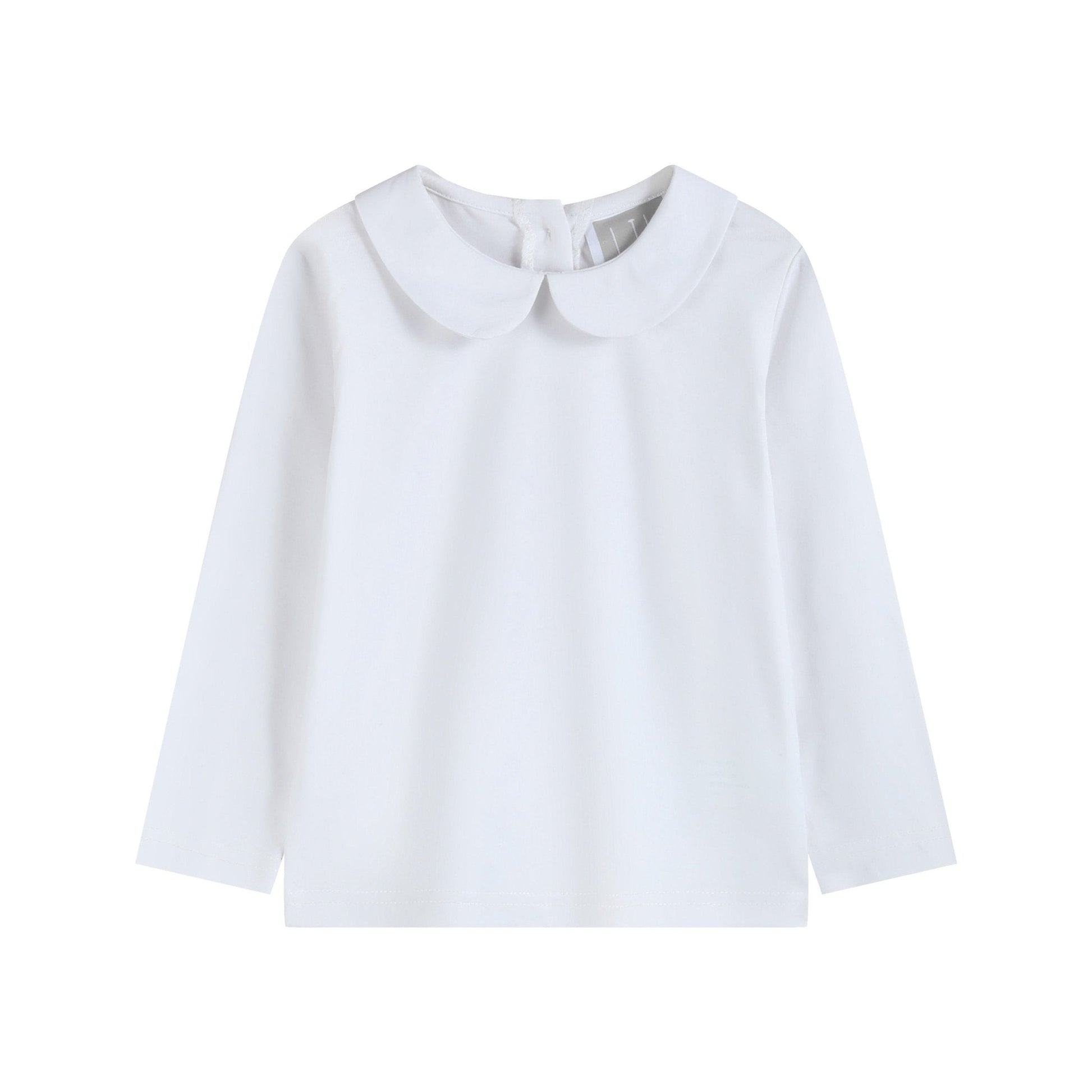 This versatile White Collared Shirt is a must-have for your little girl's wardrobe. Featuring a classic collar and long sleeves, it pairs beautifully with our Ruffle Jumper Dresses for a polished look. The collar is perfect for monogramming or embroidery, adding a personalized touch for special occasions or everyday elegance. Made for comfort and style, it’s a timeless choice.
