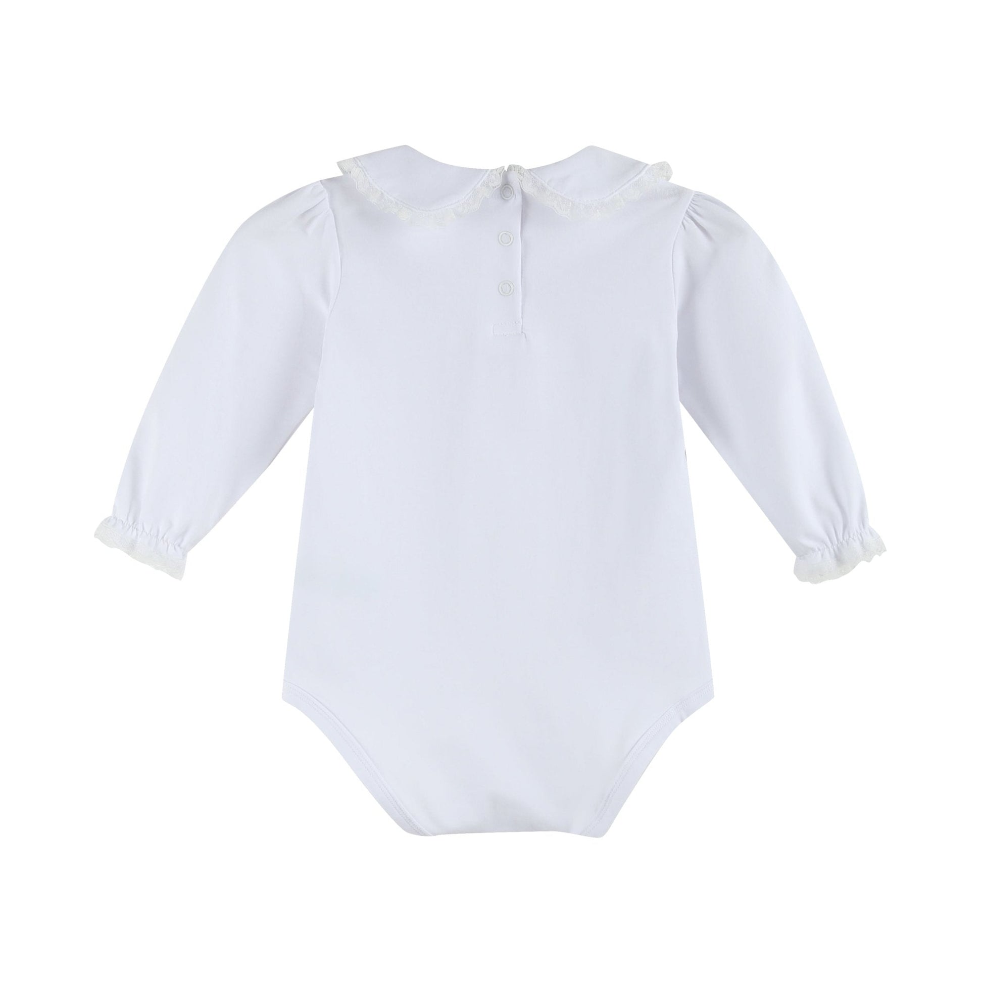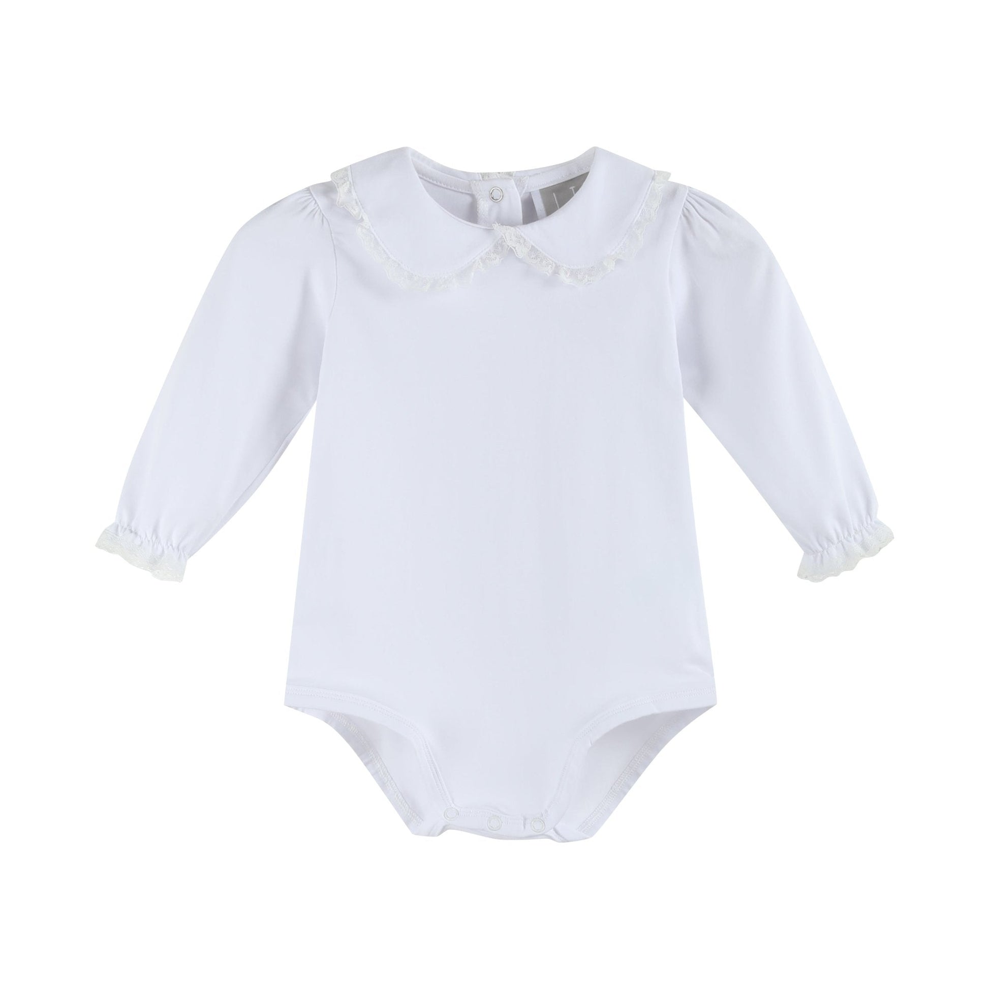 White Lace Collared Girls Long Sleeve Bodysuit Romper